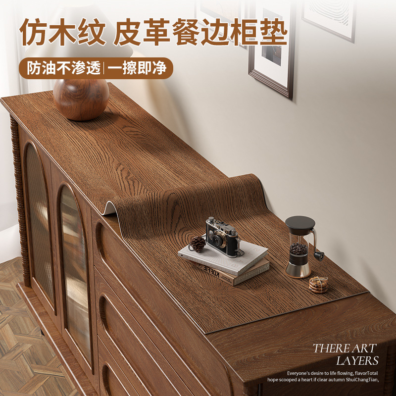 皮革仿实木纹餐桌垫防水防油防烫桌布原木色桌面保护垫茶几垫台布