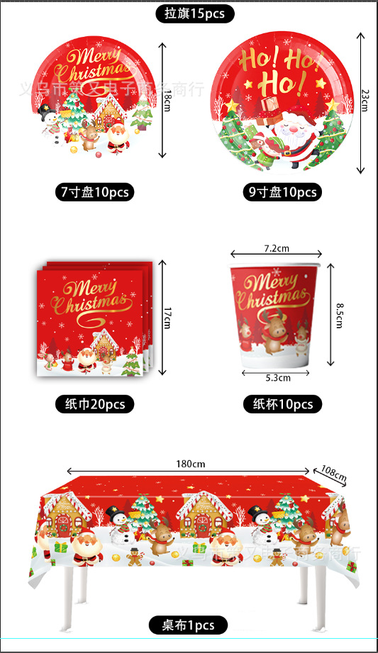 国境を越えた新しいクリスマステーマ使い捨てパーティー食器紙コップ紙皿ペーパータオル旗ナイフセット装飾用品