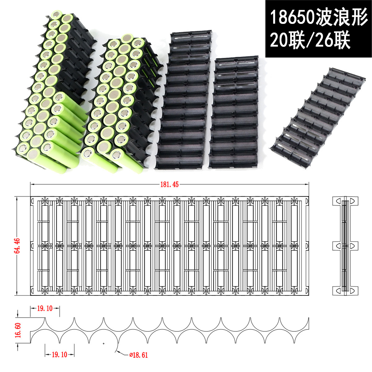 18650 四孔、六孔拼接支架: