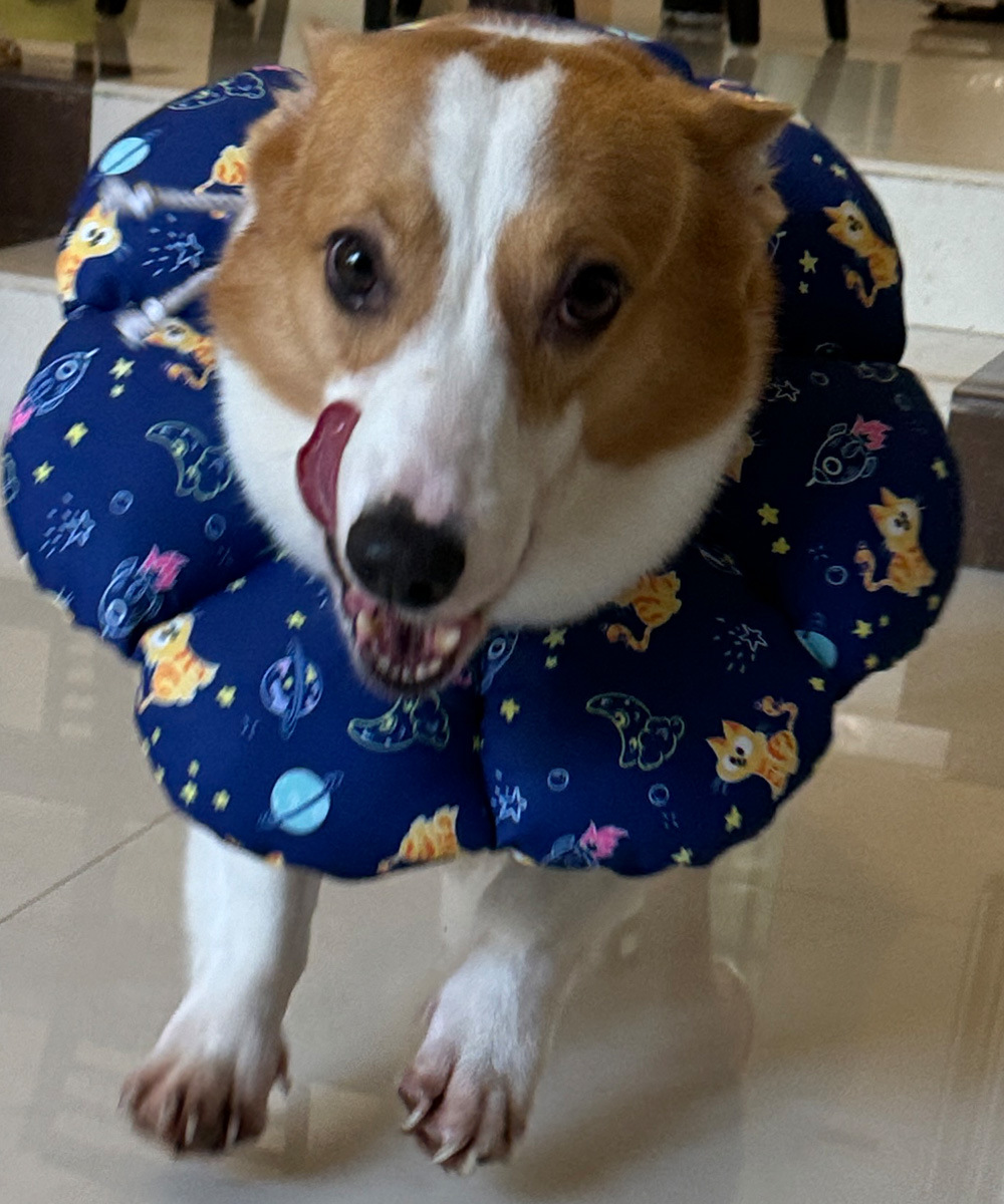 模特柯基体重25斤,使用大号