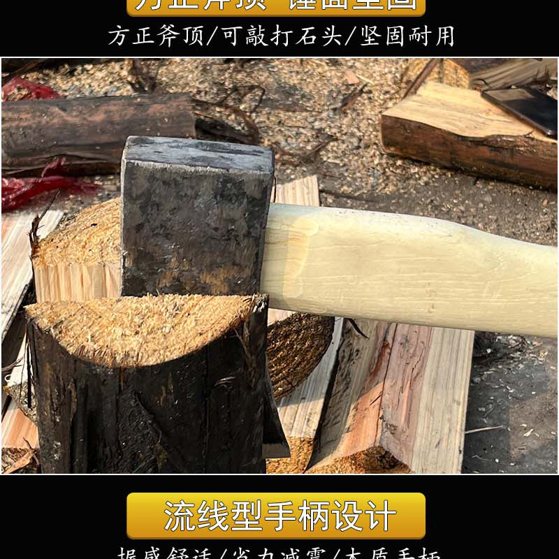 軌道鋼鍛造角穴花柄大型板斧薪割り斧屋外山斧家庭用炭化ハンドルツールセット