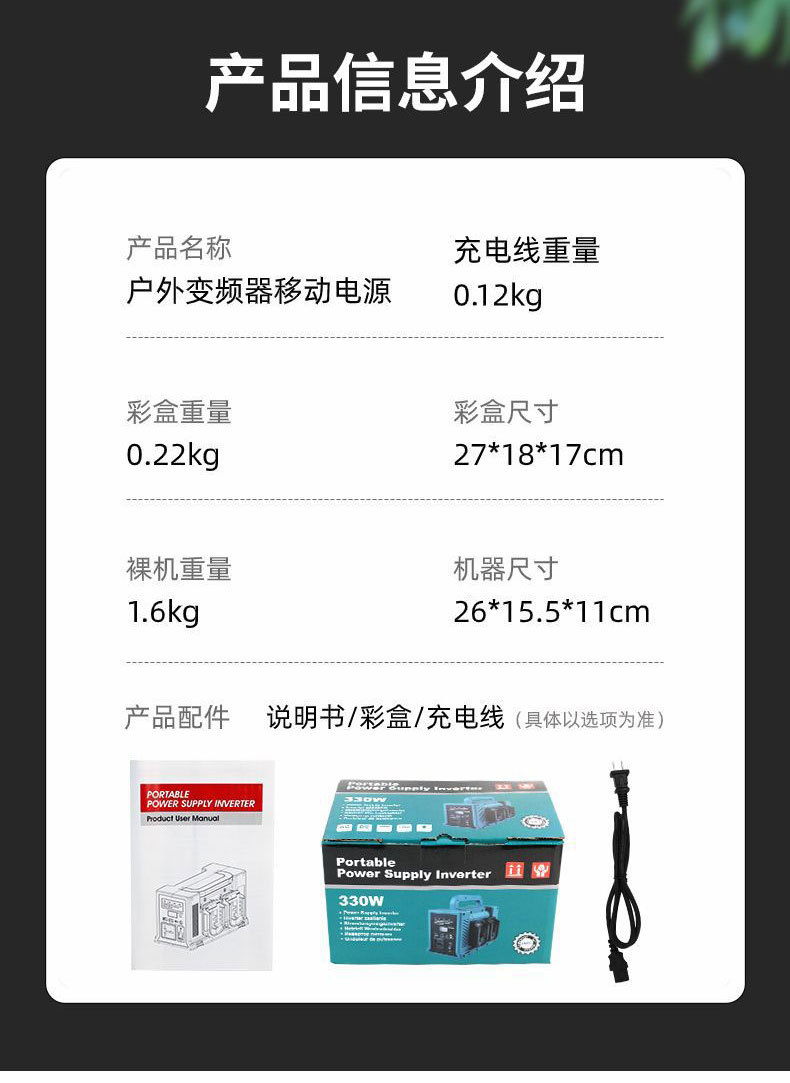 户外移动逆变器300W锂电工具电池 AC220V / DC5V 多功能蓄电池