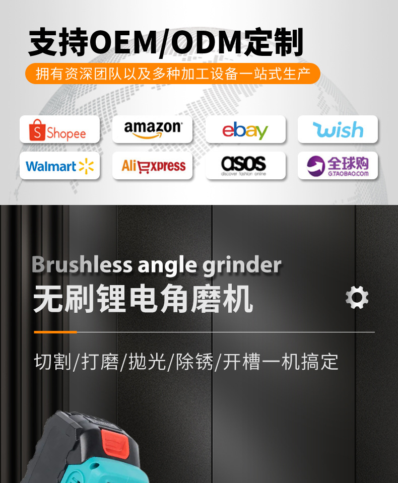工場カスタマイズされたハイパワーブラシレス電気アングルグラインダー多機能リチウム電気研削研磨機ハンドヘルド切断機