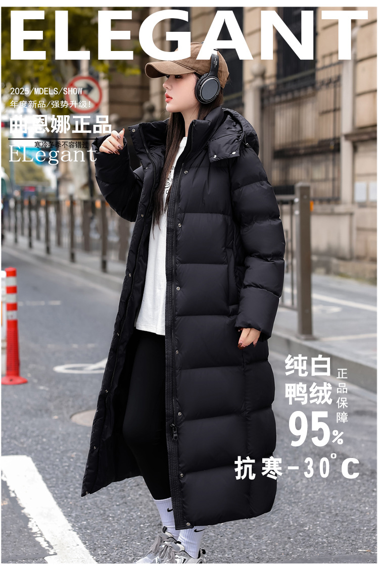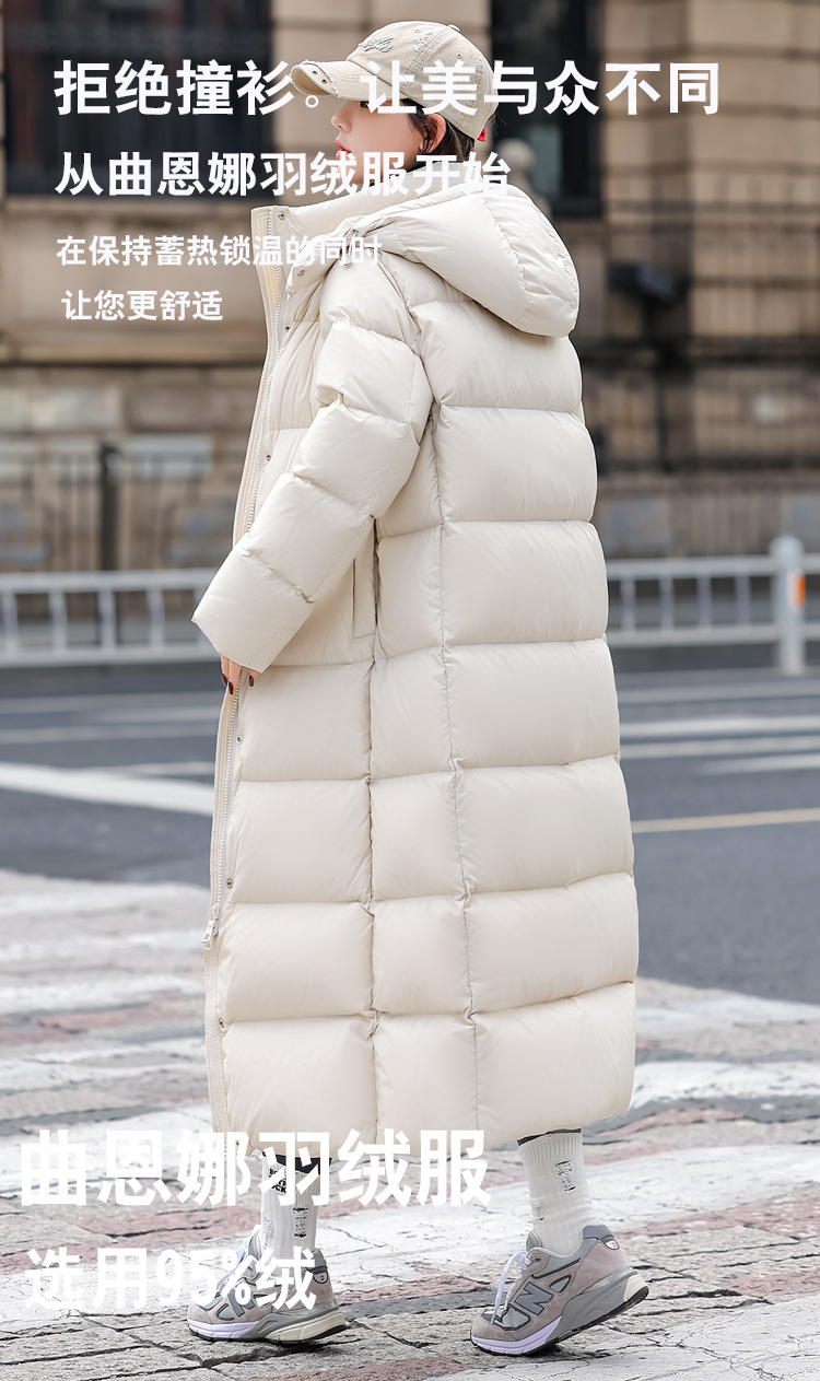 2024曲恩娜長型ダウンジャケット女性冬2024新高級95白鴨絨毯極寒厚厚コート