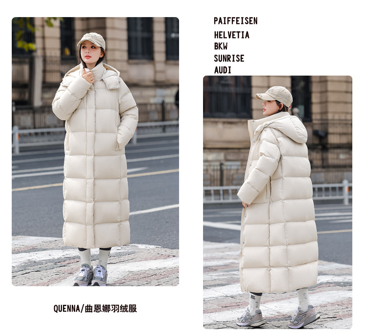 曲恩娜95% 白鴨絨毛ハイエンドダウンジャケット女性2024新冬のロングタイプの膝を越えて保温コートを厚くする