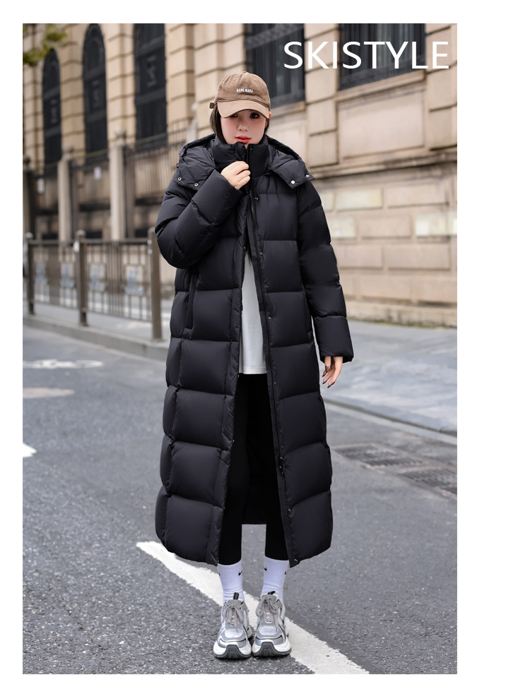 95白鸭绒长款羽绒服女2025新款加厚450g情侣装极寒中戏宽松外套