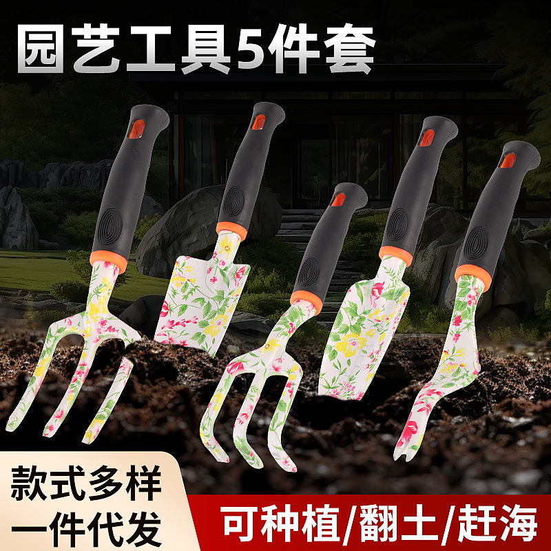 アマゾン爆品屋外アルミ合金園芸ツール5点セットプリント園芸掘削花シャベルセット卸売り