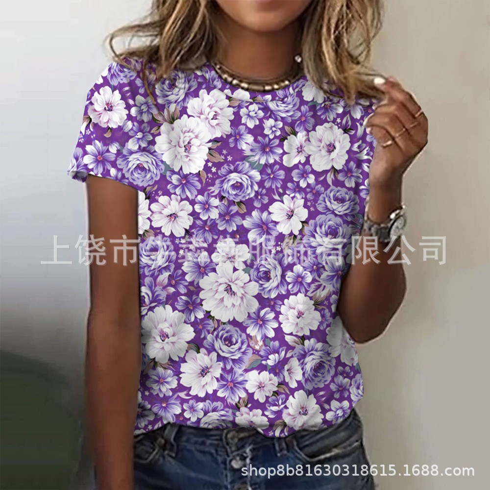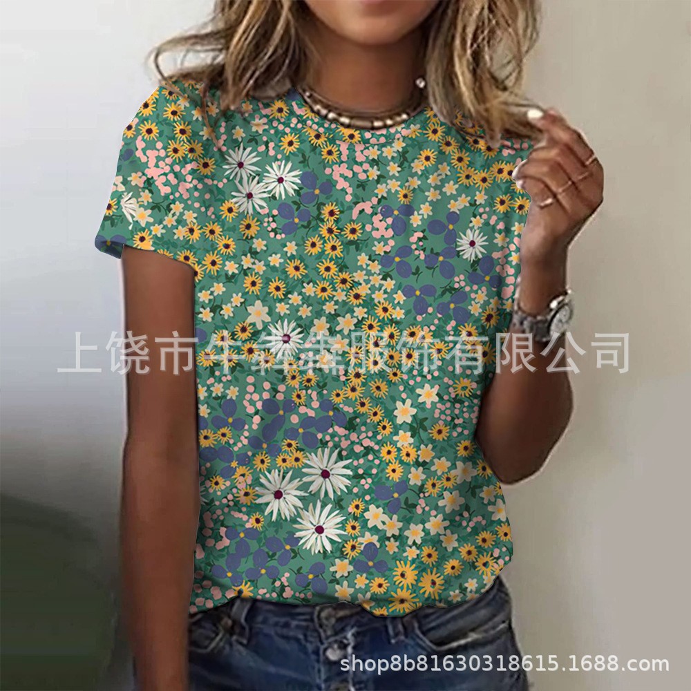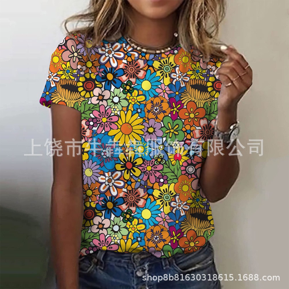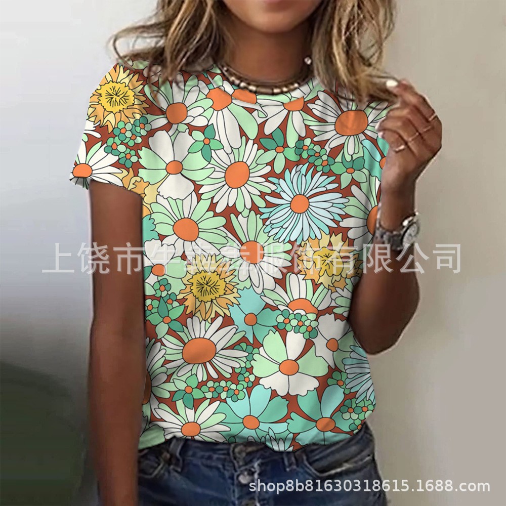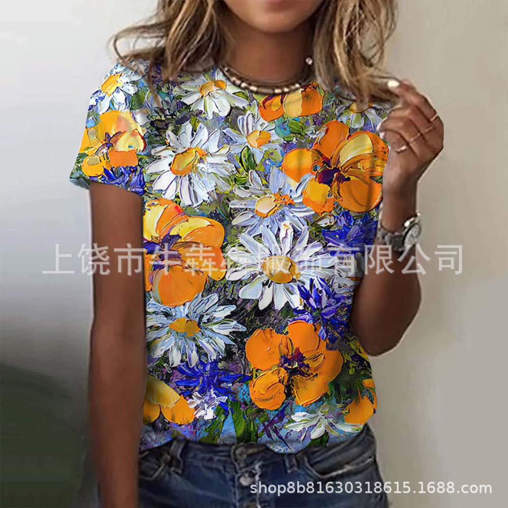 欧米の夏の人気3DTシャツ半袖クロスボーダー外国貿易卸売カジュアル花風プリントレディース半袖tシャツ