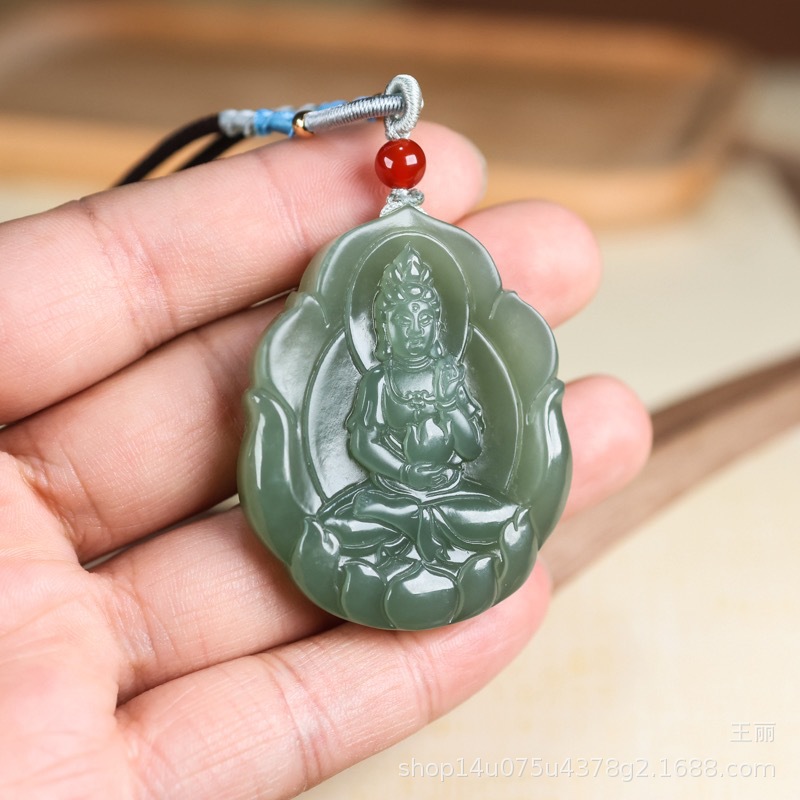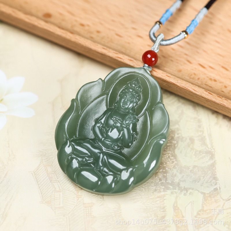 天然和田玉観音ペンダント男玉青海材料蓮花観音菩薩玉佩玉玉ネックレス女玉牌