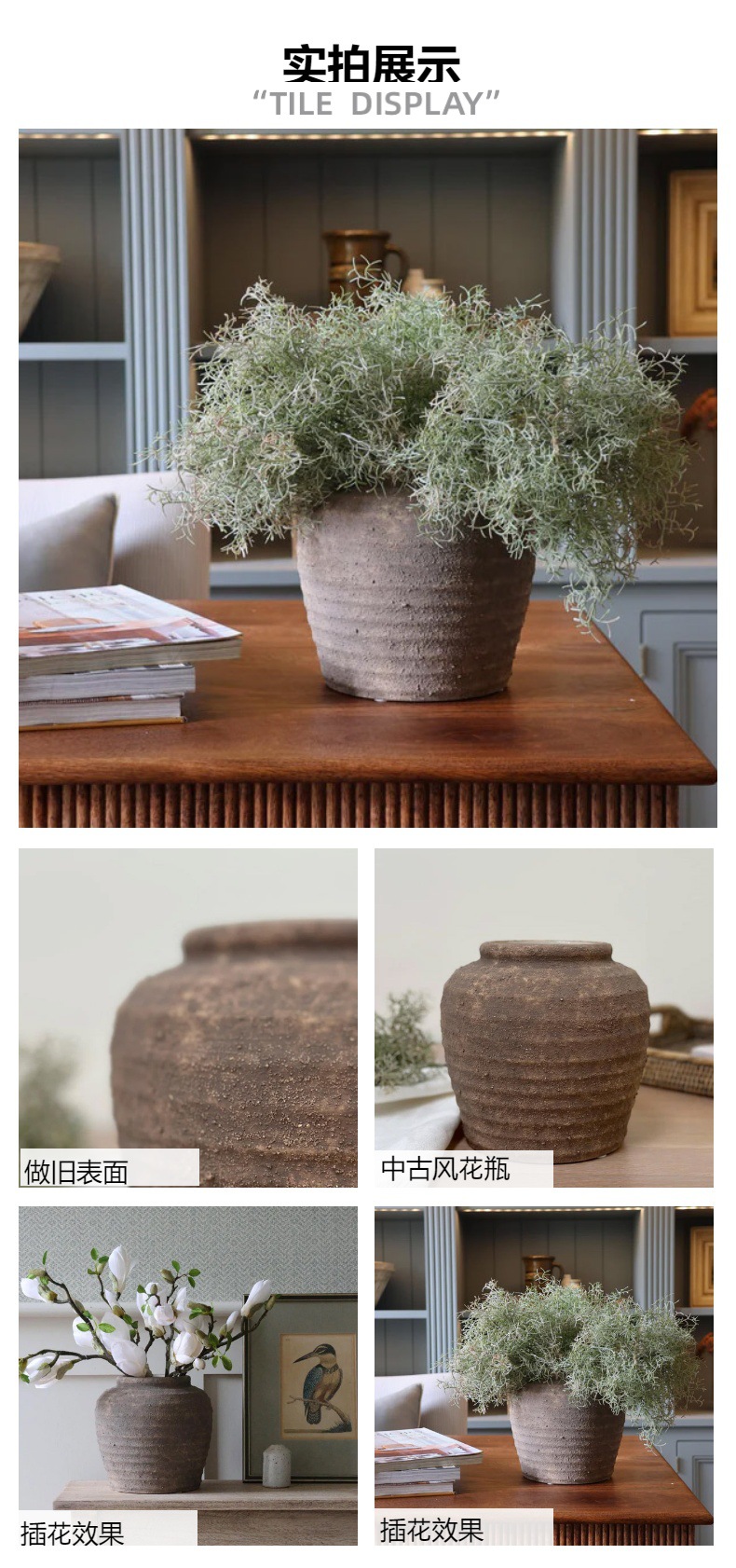 御三泥客厅插花养鲜花装饰摆件手工粗陶台面陶罐子干花小花盆花瓶