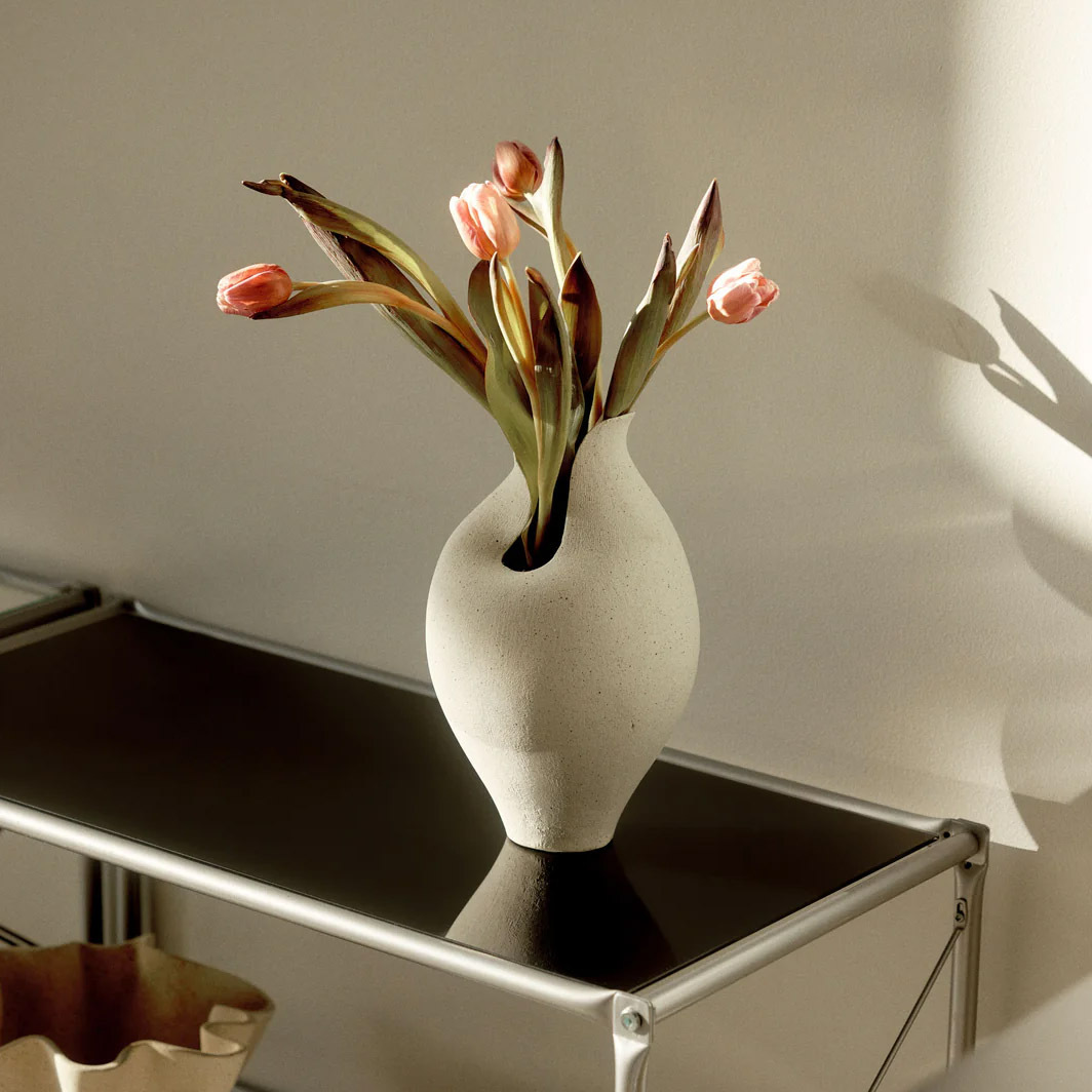 高級感のあるフレンチ侘び寂び風の軽奢な砂岩風セラミック花瓶、リビングテーブルの花瓶、インテリア装飾品