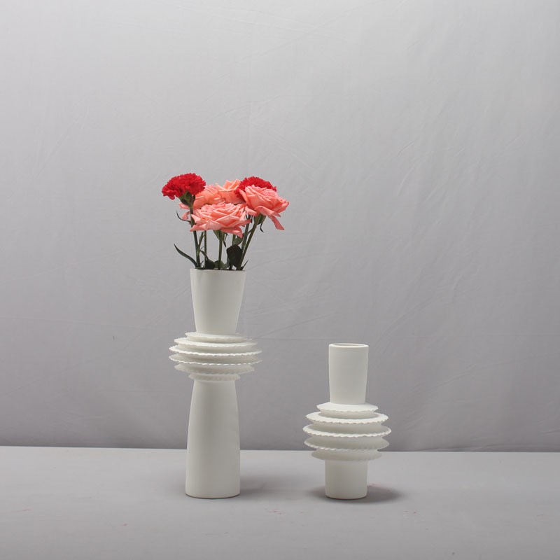 インスタ风高级感ホワイト手捏ね花瓶家庭用リビング食卓饰りフラワーギフト