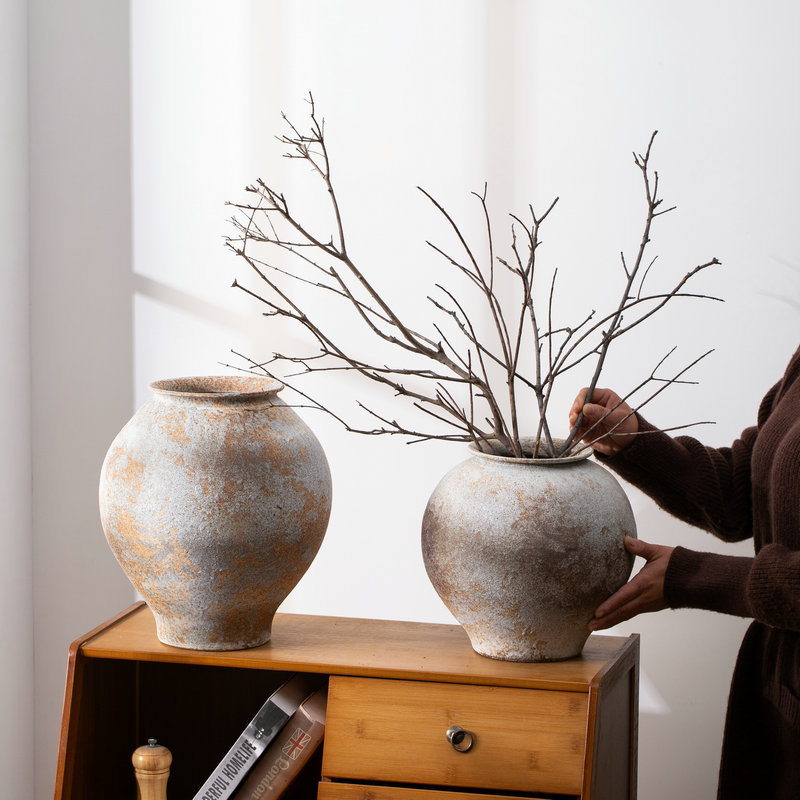 Zara デザイナーのわびさびスタイルのレトロな古い効果のフランスのセラミック花瓶の柔らかい装飾装飾品