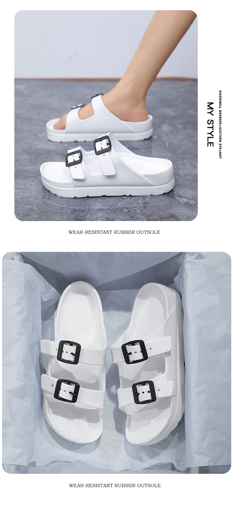 2024夏の新しいスリッパの女性夏室は、厚い底の滑り止めを着て、フラットな家庭ファッションのサンダルを着ています