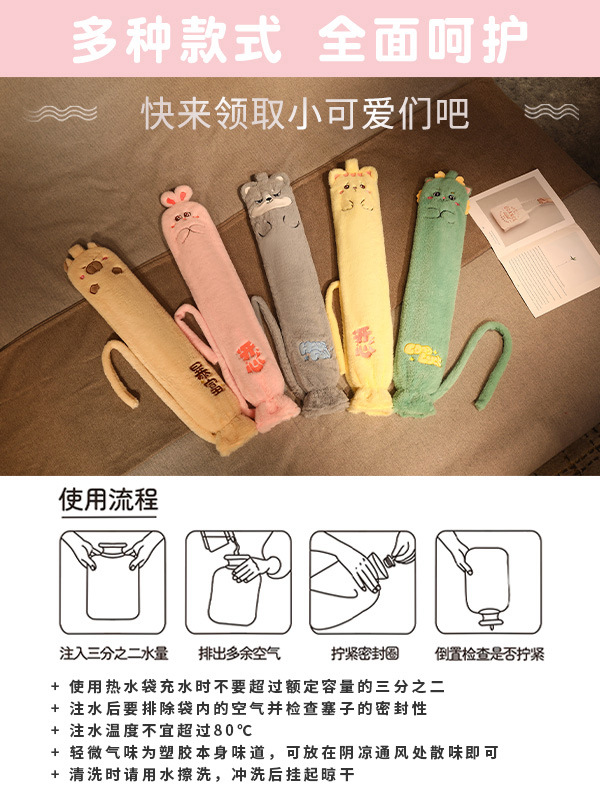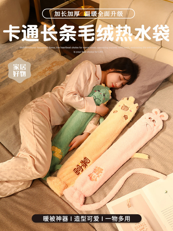 可爱卡通热水袋冬天暖手冬季抱枕长条枕女生睡觉夹腿卧室孕妇可用