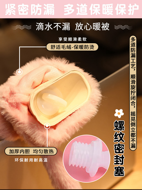 热水袋暖水袋注水加厚PVC便携可爱毛绒热敷暖肚子可插手暖手宝