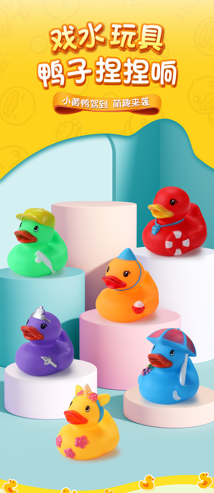 港版小黄鸭儿童洗澡搪胶捏捏玩具宝宝游乐园游泳池戏水小鸭子玩具
