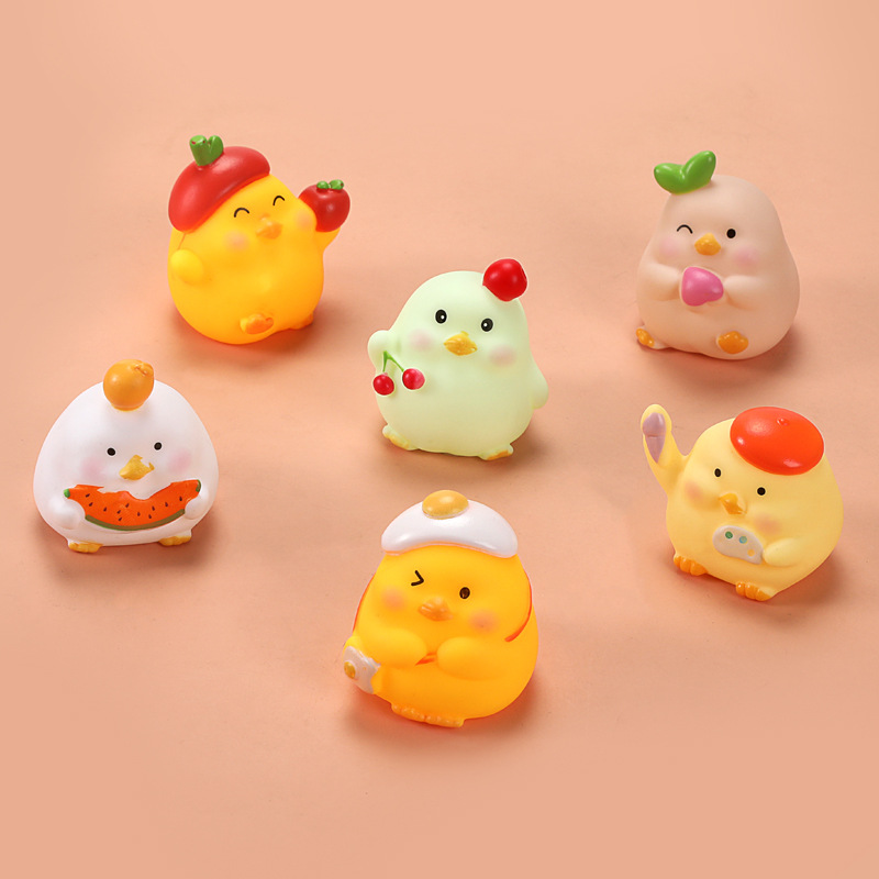 萌鸡小队捏捏叫发声儿童玩具软胶车载摆件可爱呆萌小鸡跨境热卖