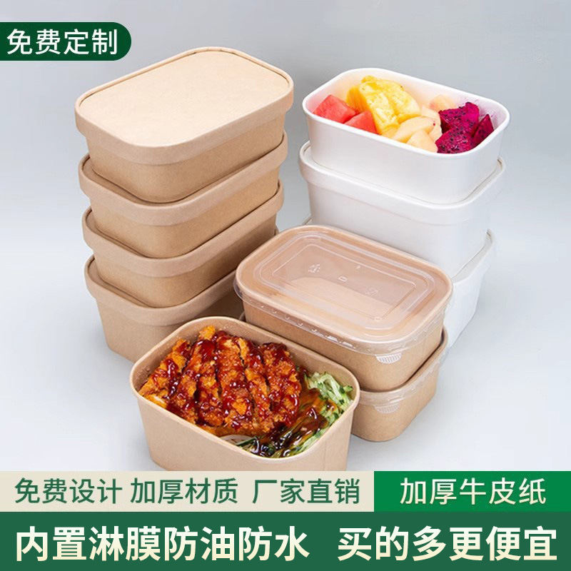 使い捨てランチボックスクラフト紙包装ボックスフルーツボックス食品グレード電子レンジ対応長方形肥厚テイクアウトボックス