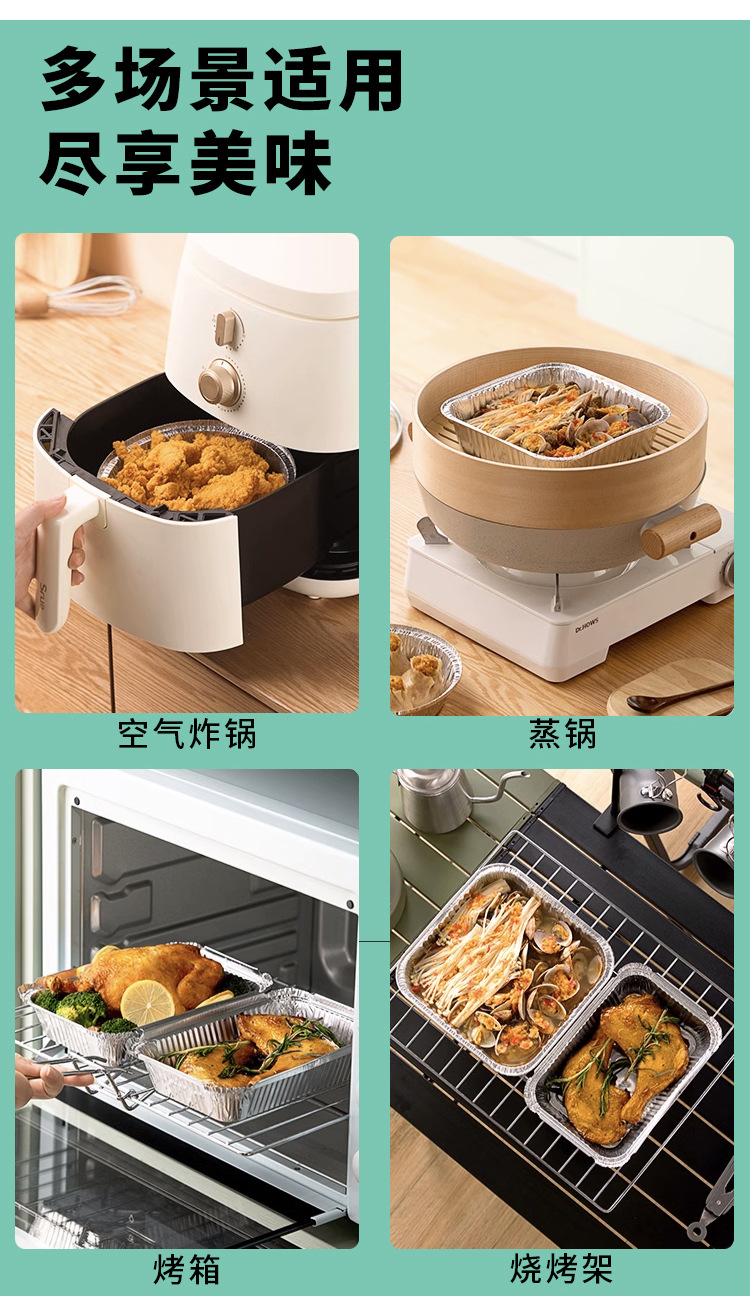 锡纸盘空气炸锅专用方形一次性餐盘食品级铝箔碗烘焙烧烤锡纸盒