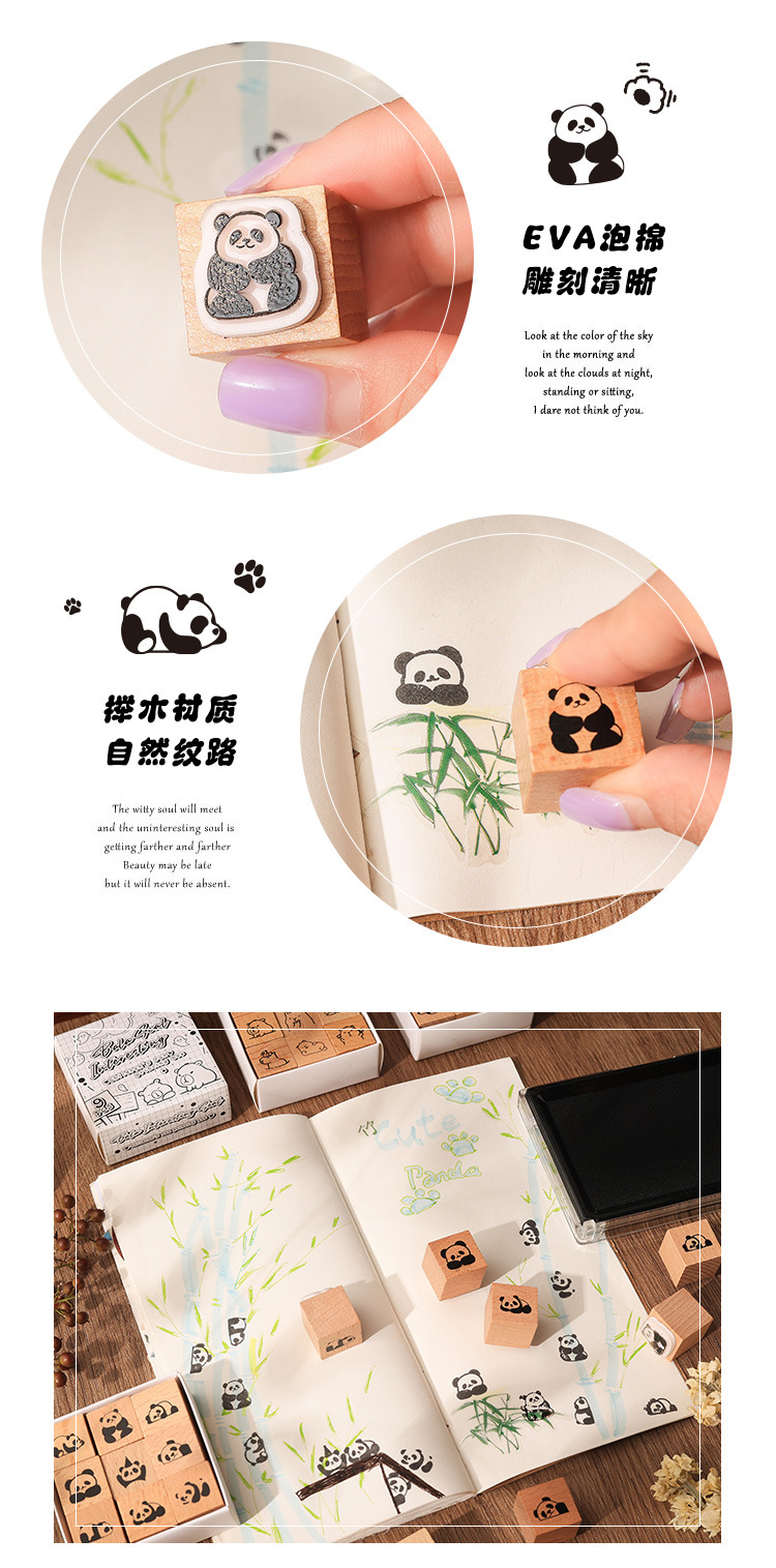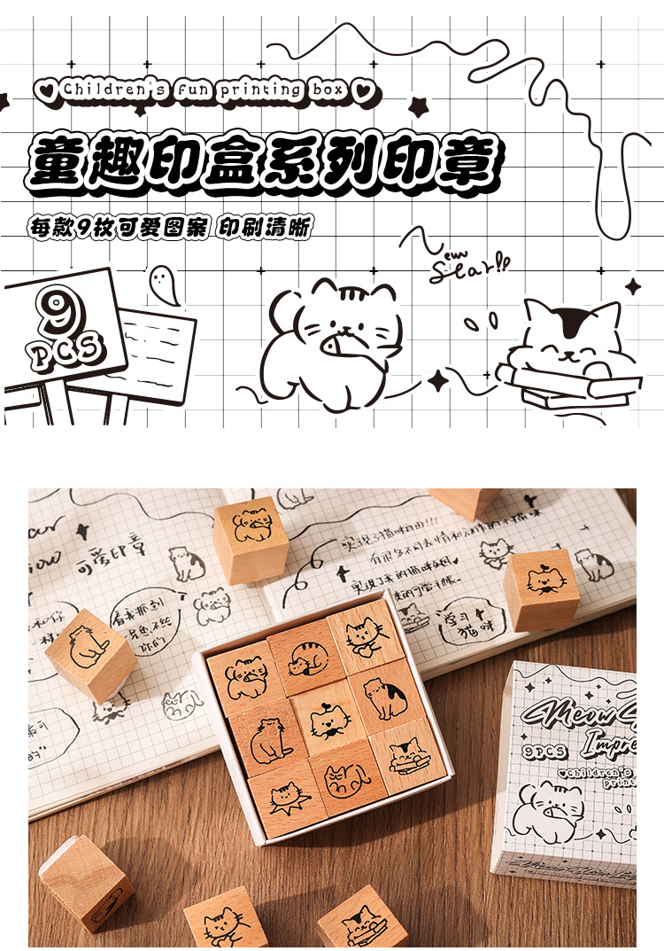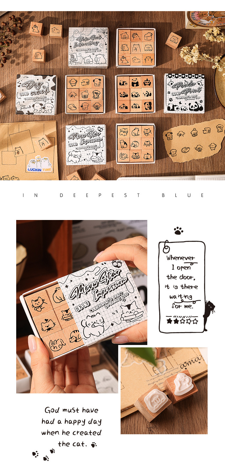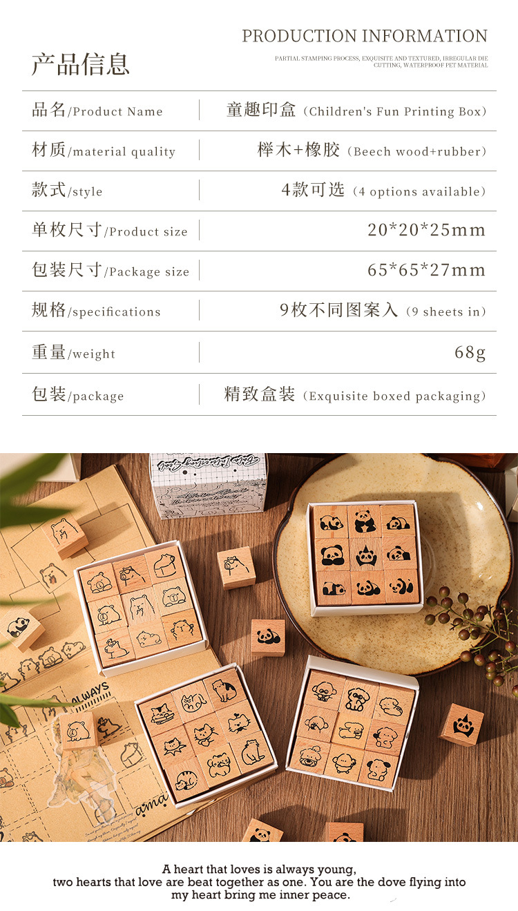 萌物小印木质印章套盒diy手账日记印画跨境复古物件榉木印章