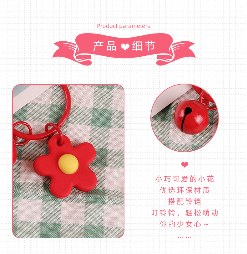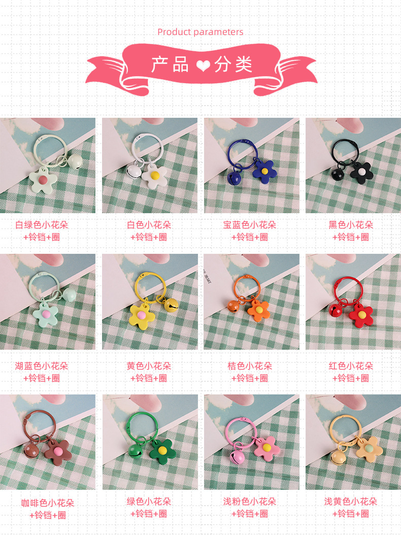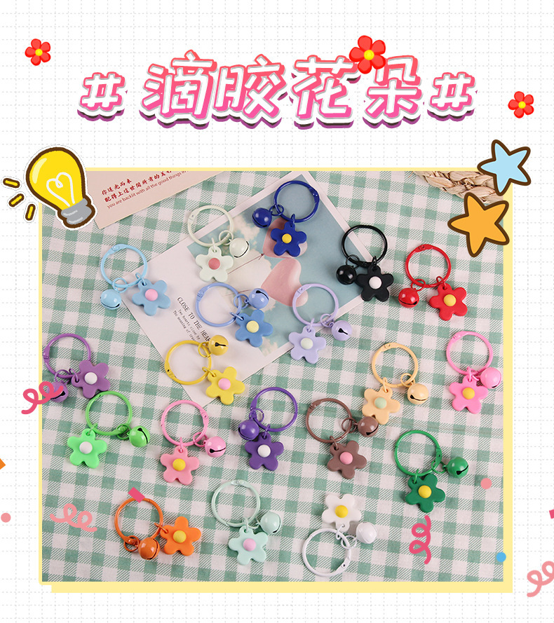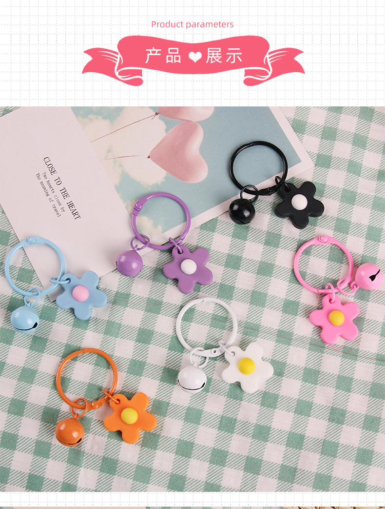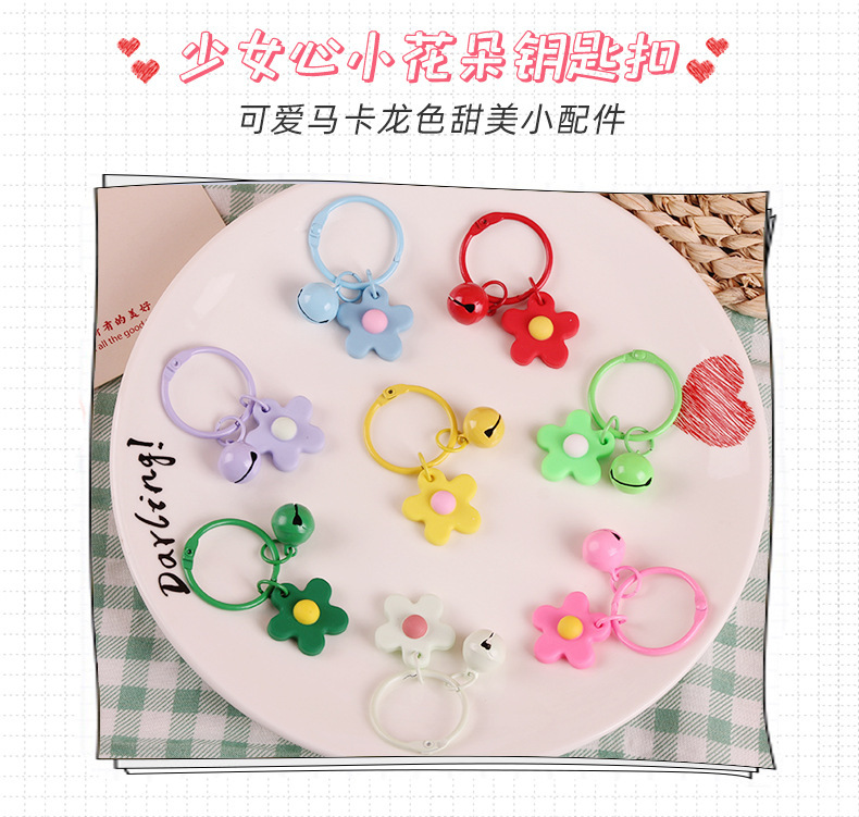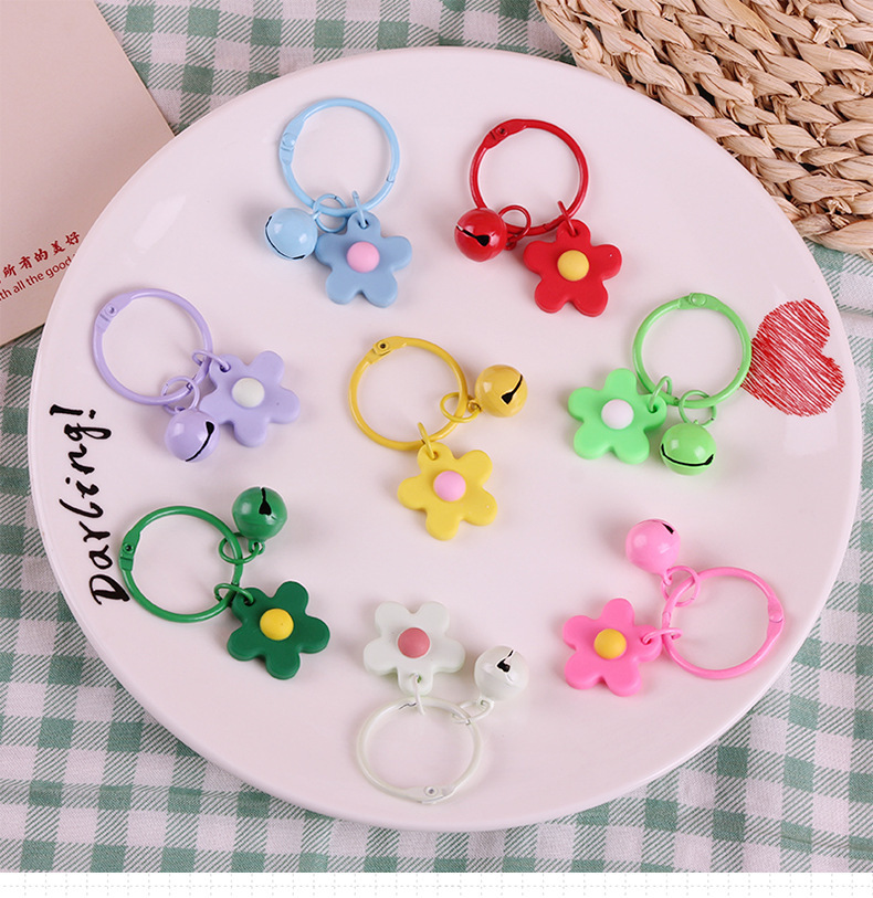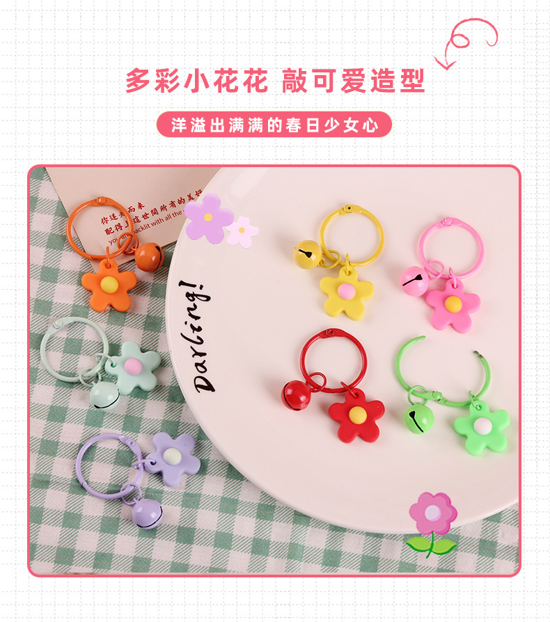 韓国版の小さい清新な色の花の鈴の鍵は携帯電話のリュックサックのかばんのペンダントのキャンディーの色のカードの輪を掛けて装飾品を配合します。