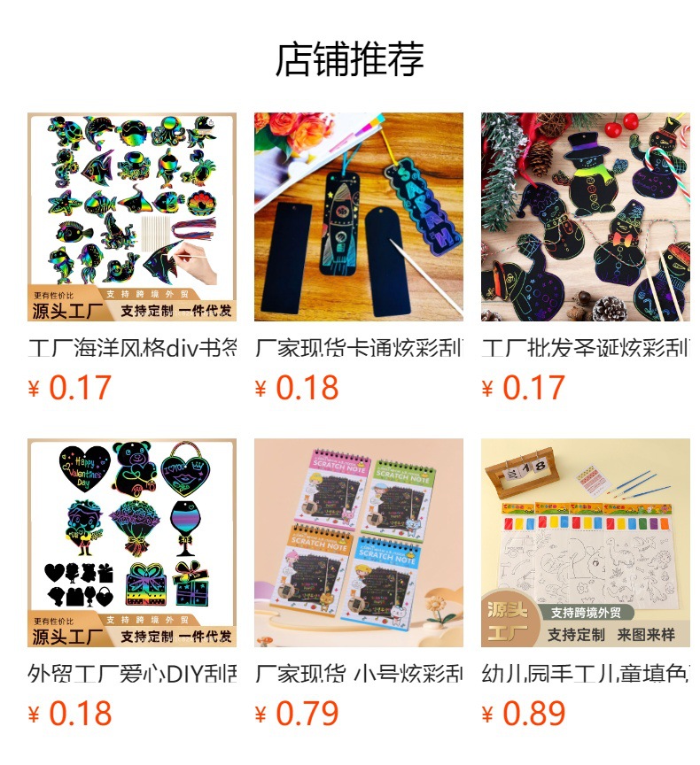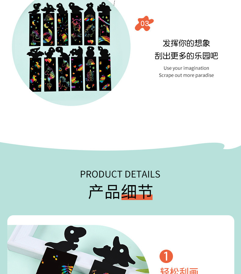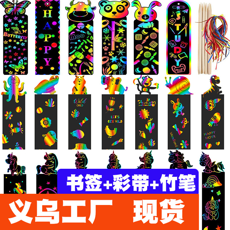 国境を越えた子供向けDIYスクラッチオフ動物カラフルスクラッチブックマークアート楽しい落書き画用紙卸売