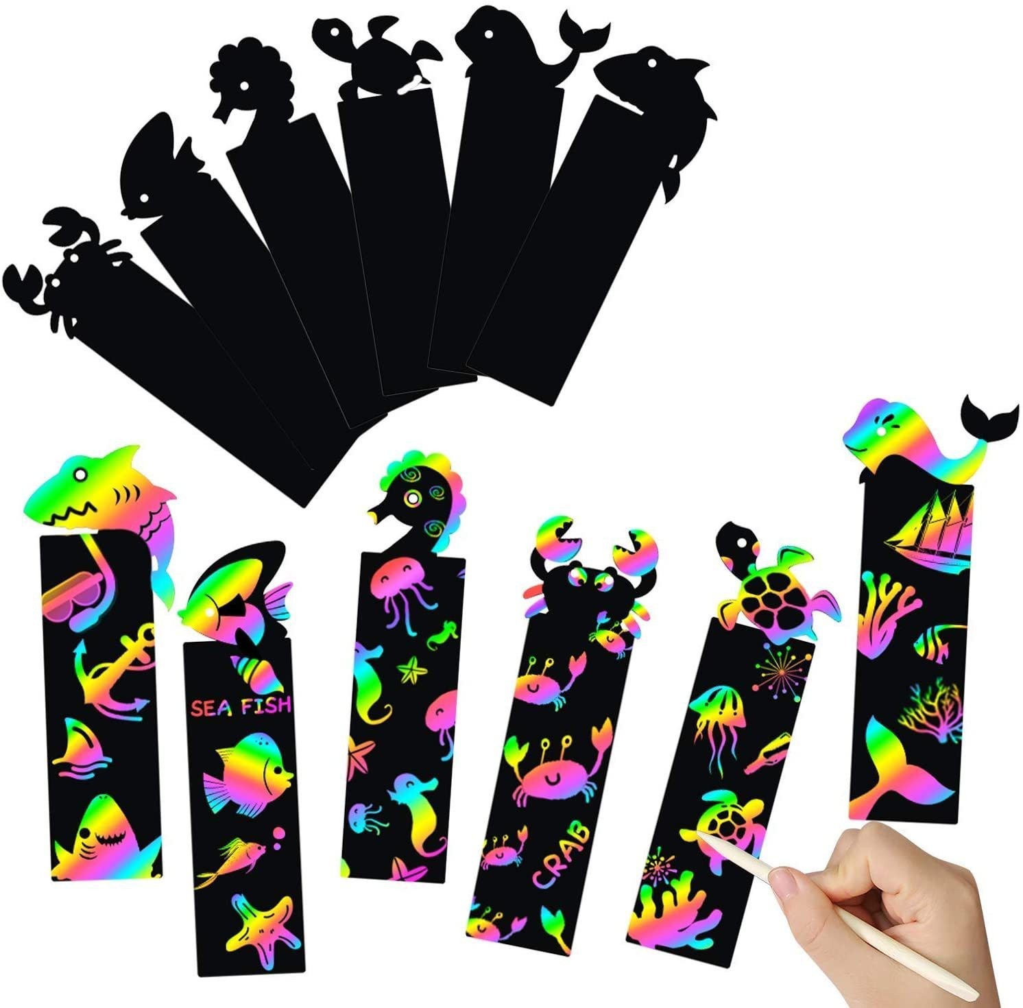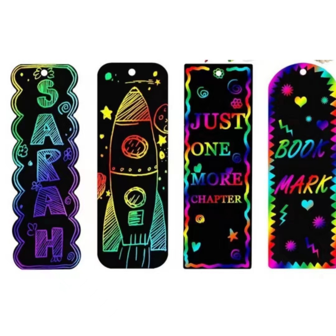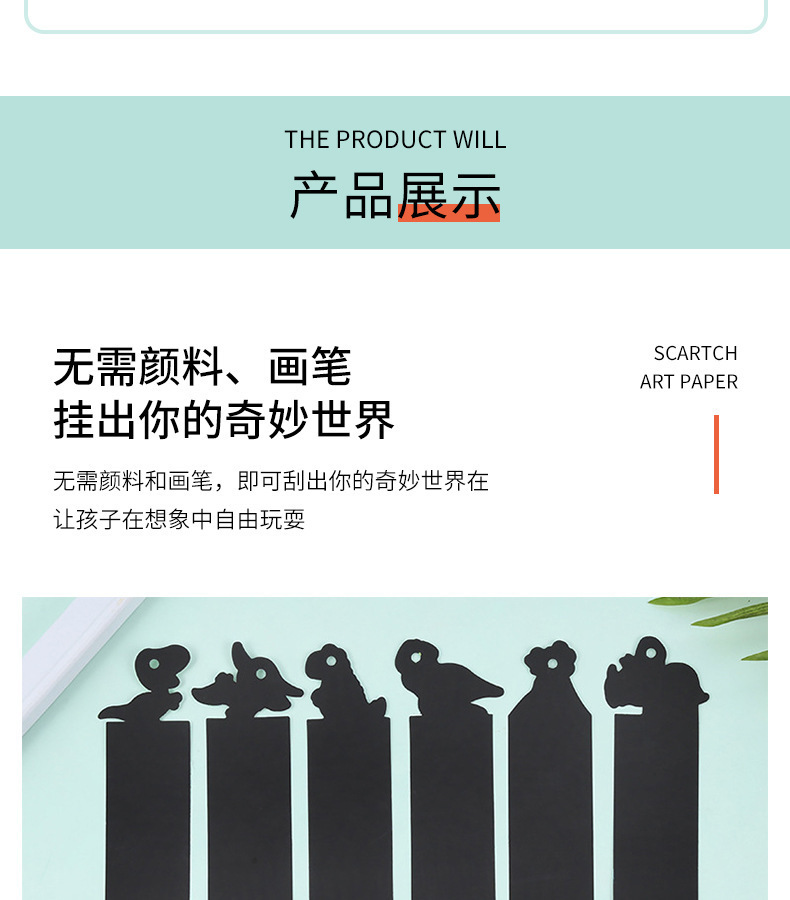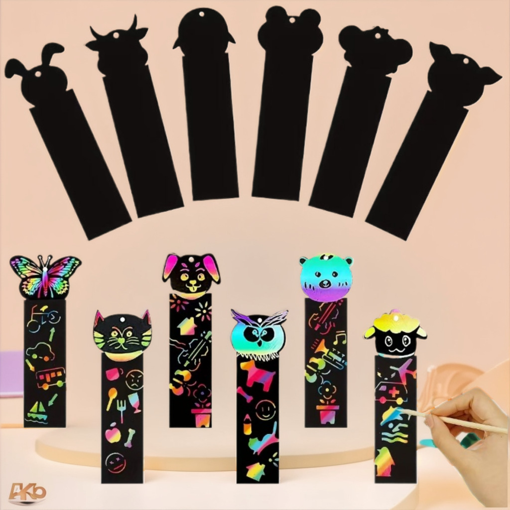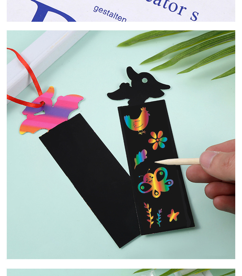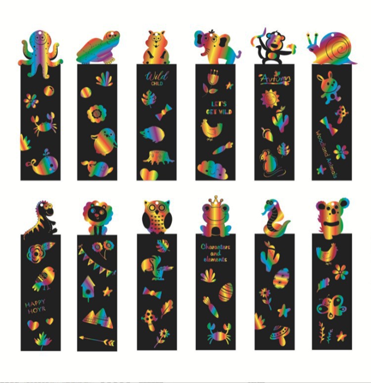 国境を越えた硬質紙製子供用DIY動物シリーズスクラッチペイントブックマーク、特殊形状スクラッチペイント、カラフルなスクラッチペイント、メーカー卸売