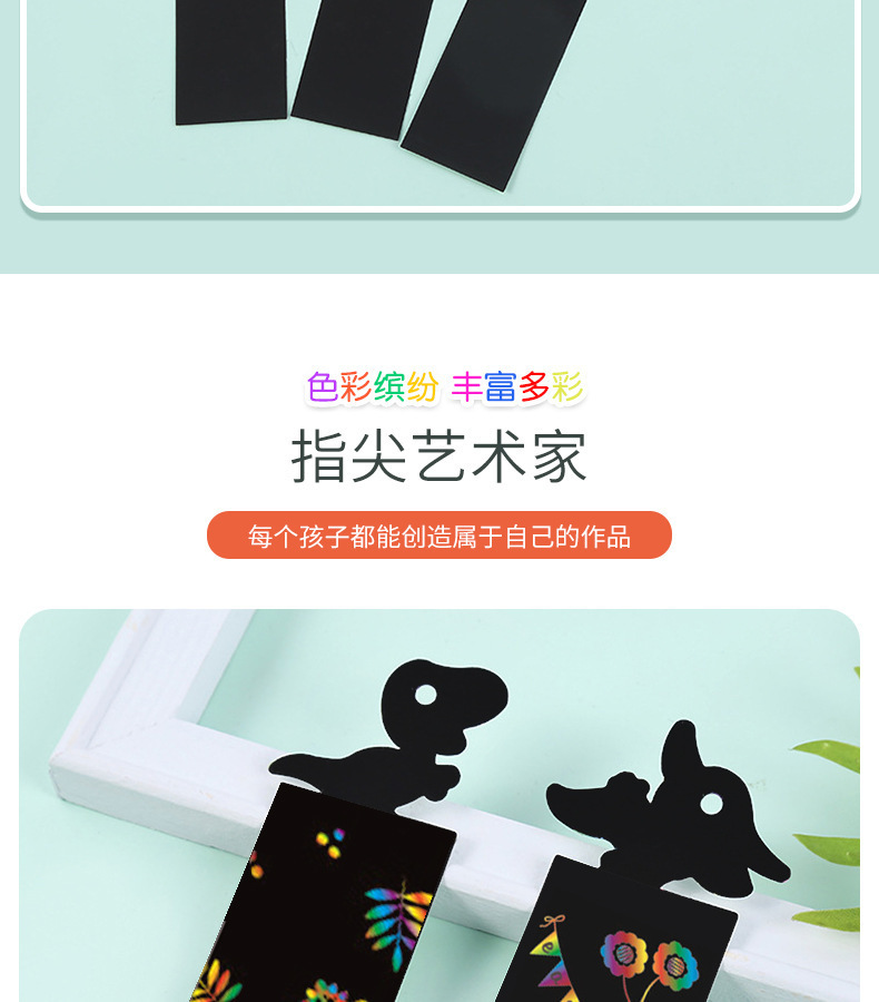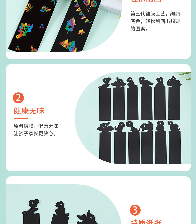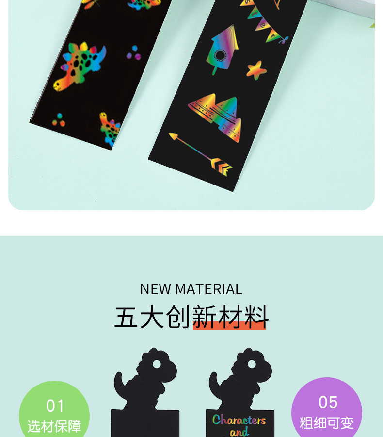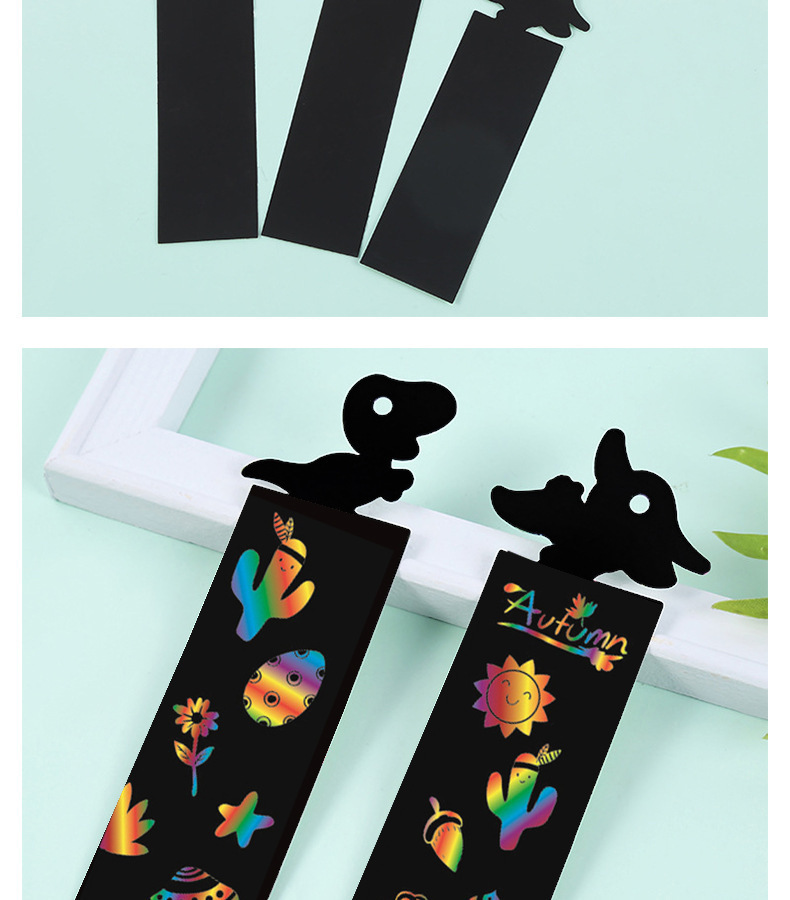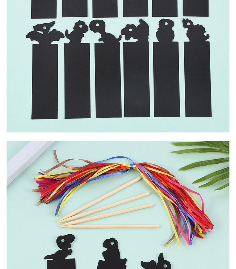 恐竜ブックマークスクラッチペーパー子供の教育 diy 手作りスクラッチ絵画楽しいクリエイティブカラフルな落書きブラックカード
