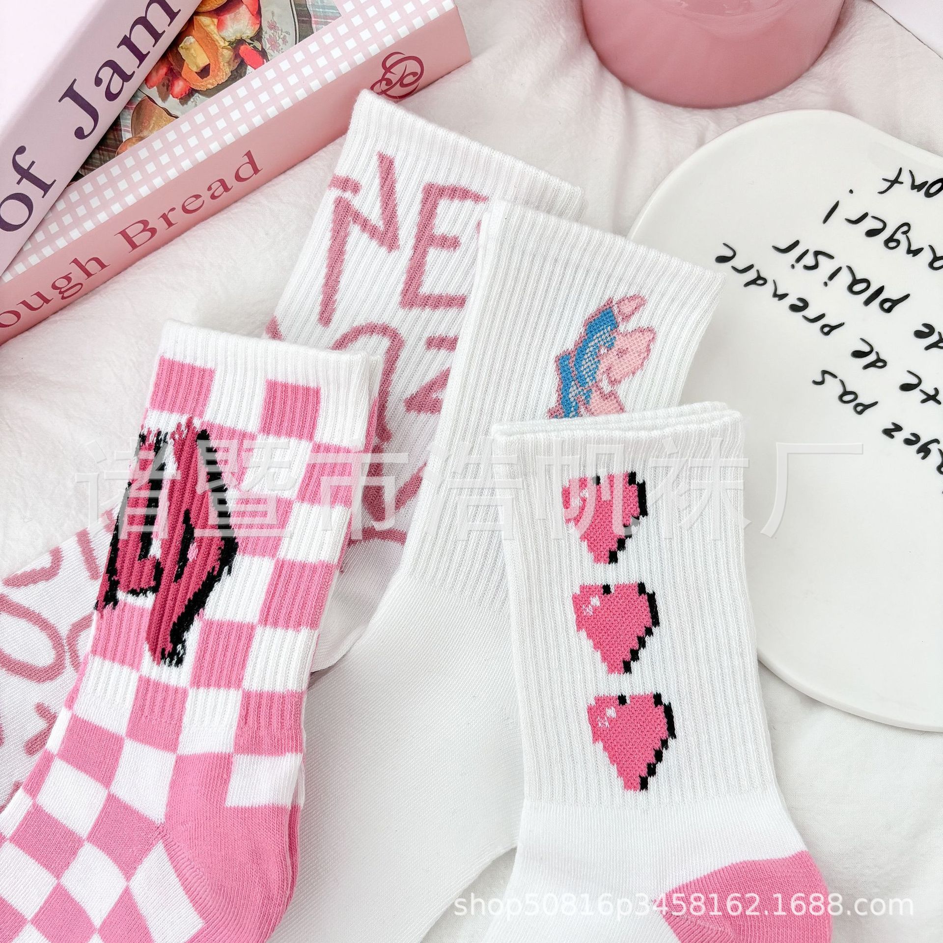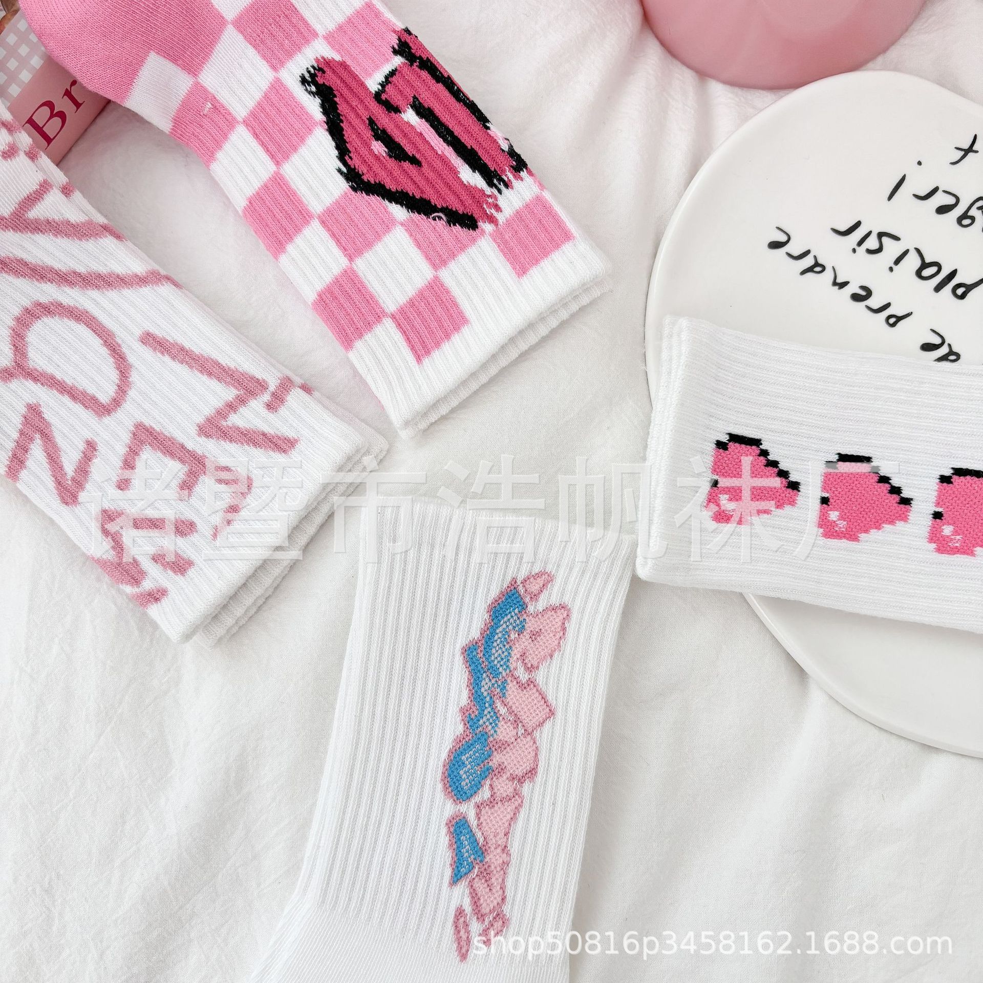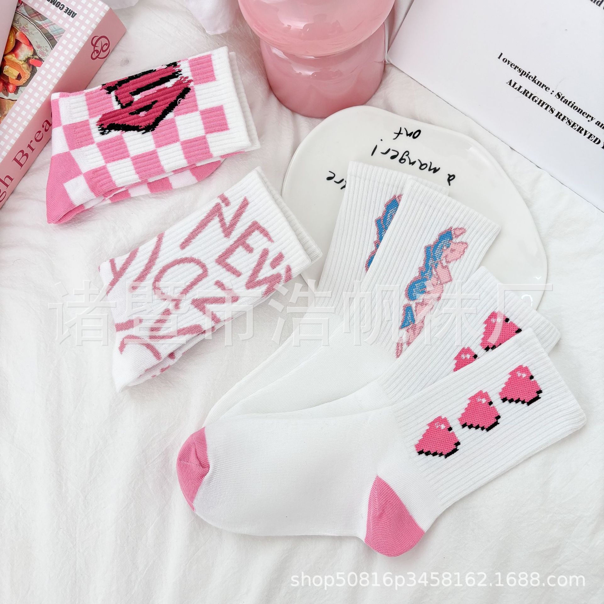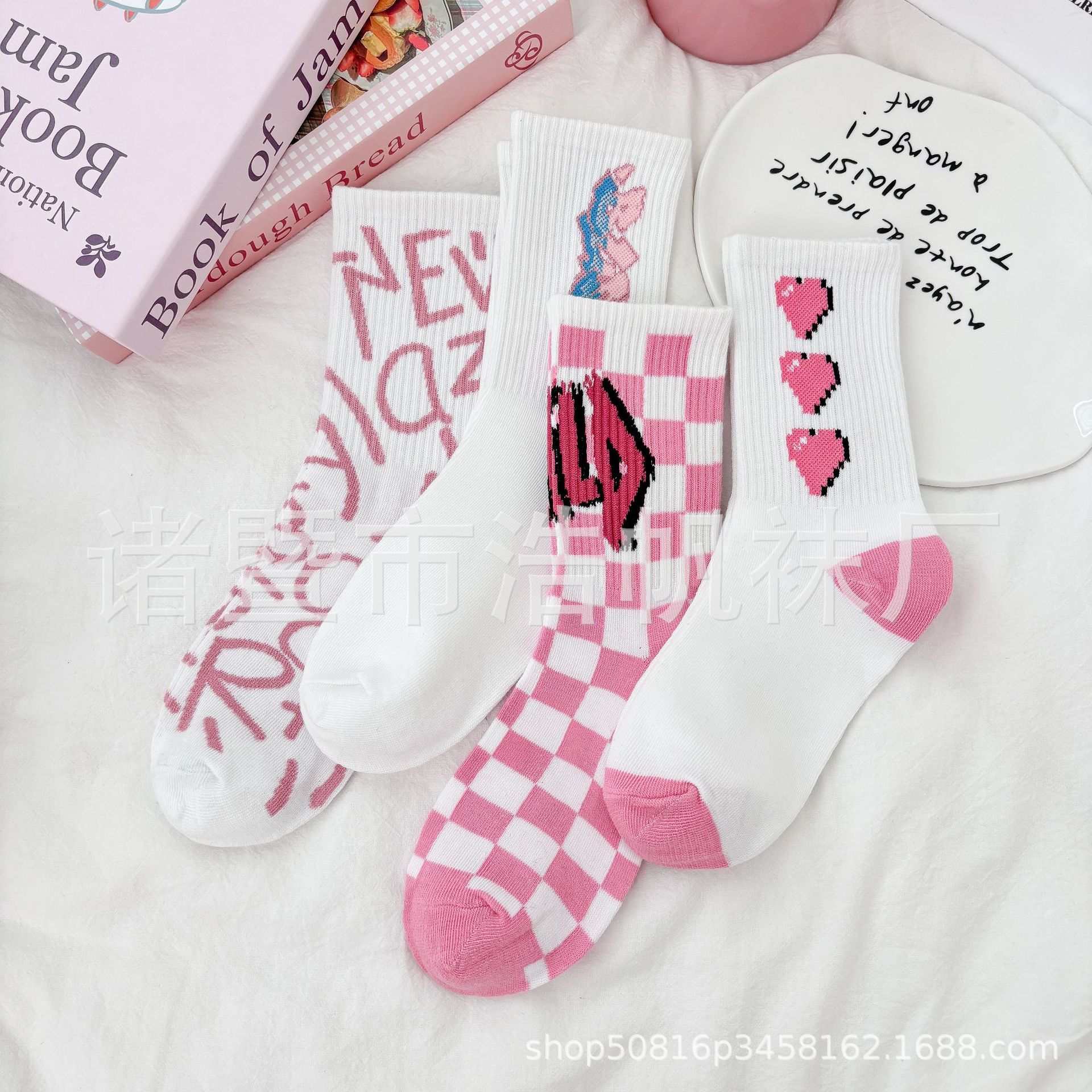 ピンクの中筒靴下の子供insファッション靴下春夏の中筒学生の街頭のスケートボードの漫画の靴下のかわいい清新な靴下