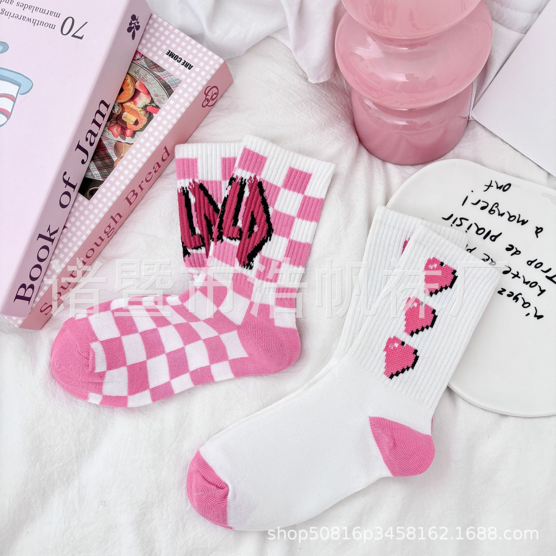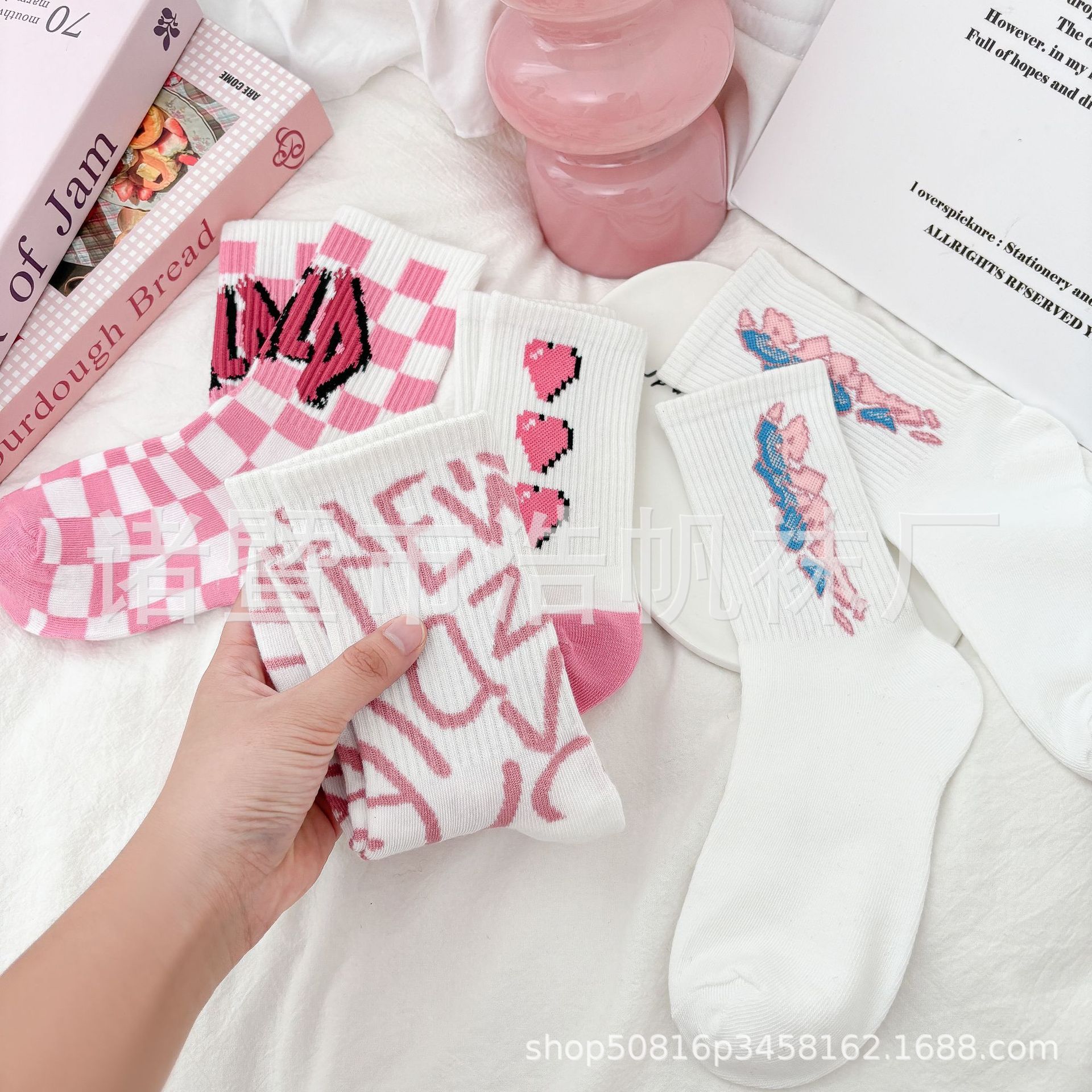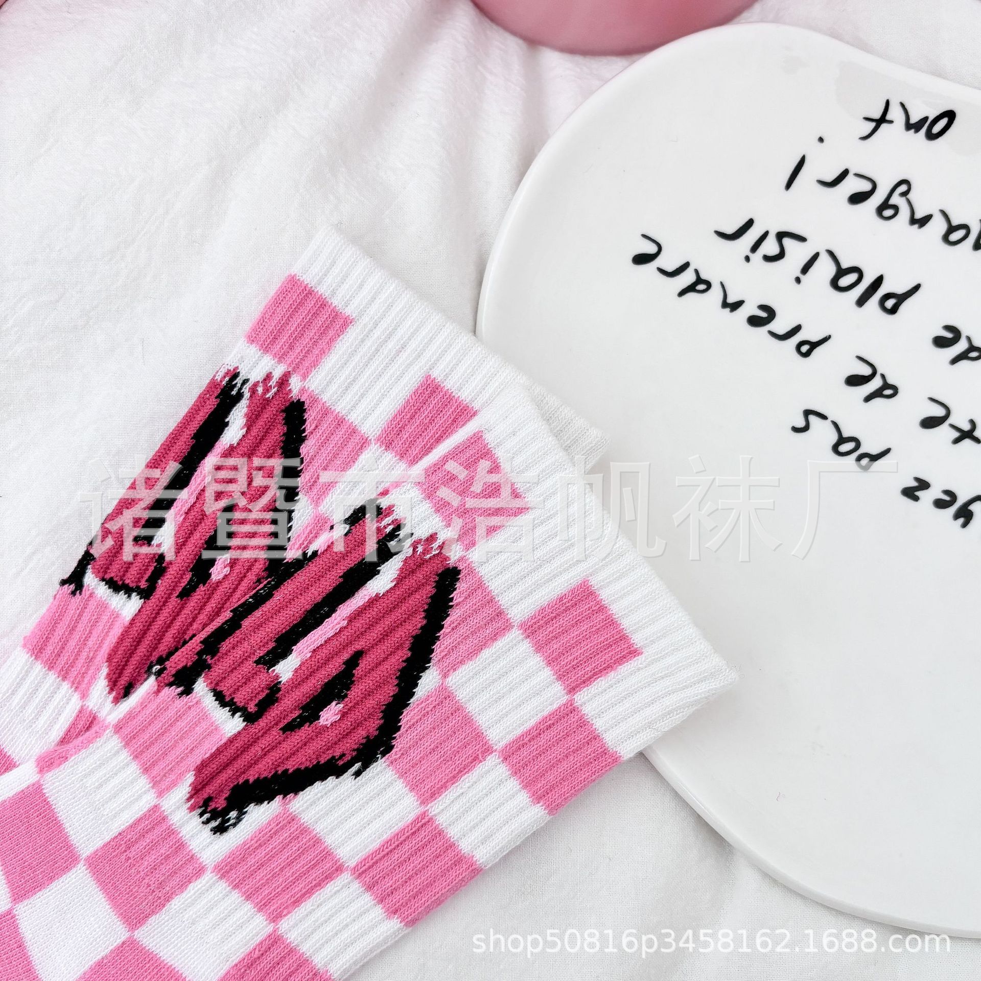 ピンクの中筒靴下の子供insファッション靴下春夏の中筒学生の街頭のスケートボードの漫画の靴下のかわいい清新な靴下