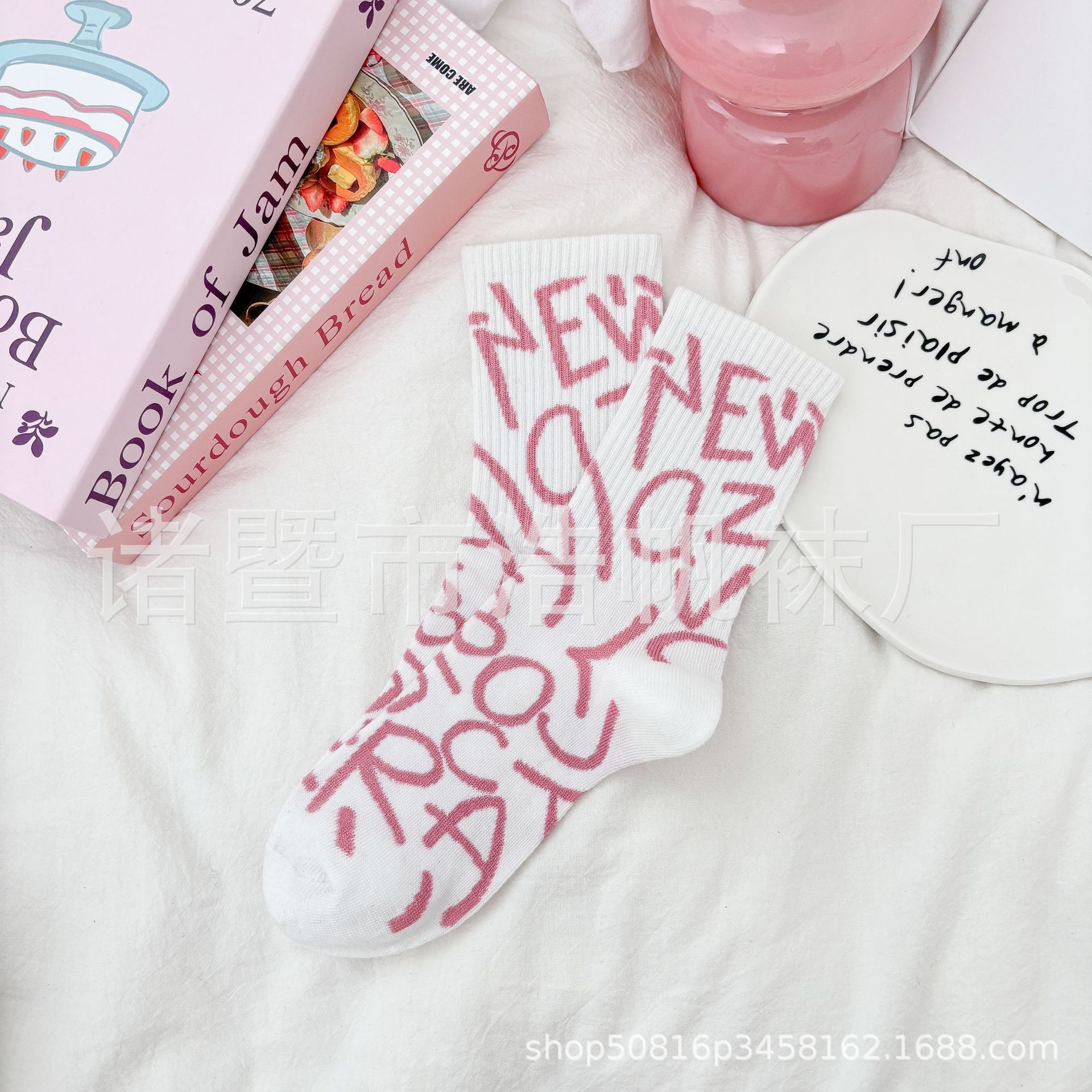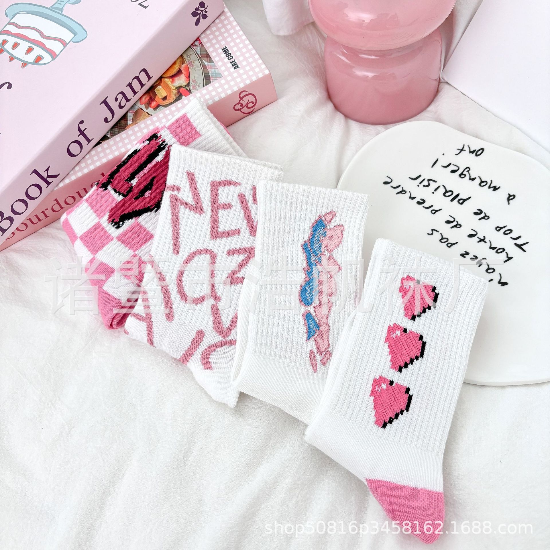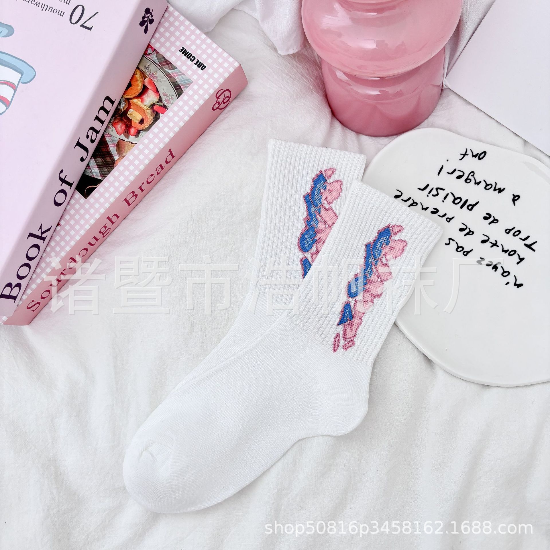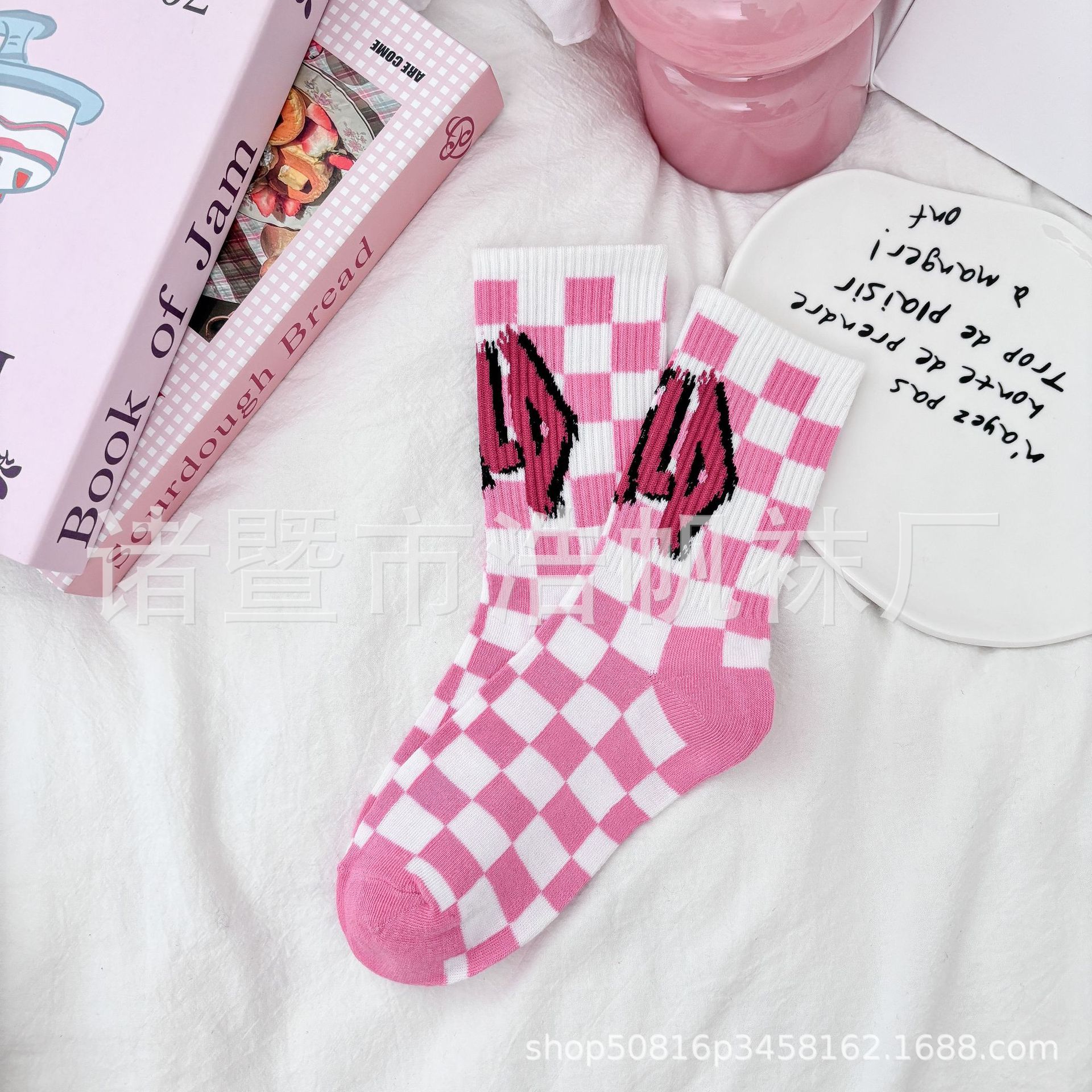 ピンクの中筒靴下の子供insファッション靴下春夏の中筒学生の街頭のスケートボードの漫画の靴下のかわいい清新な靴下