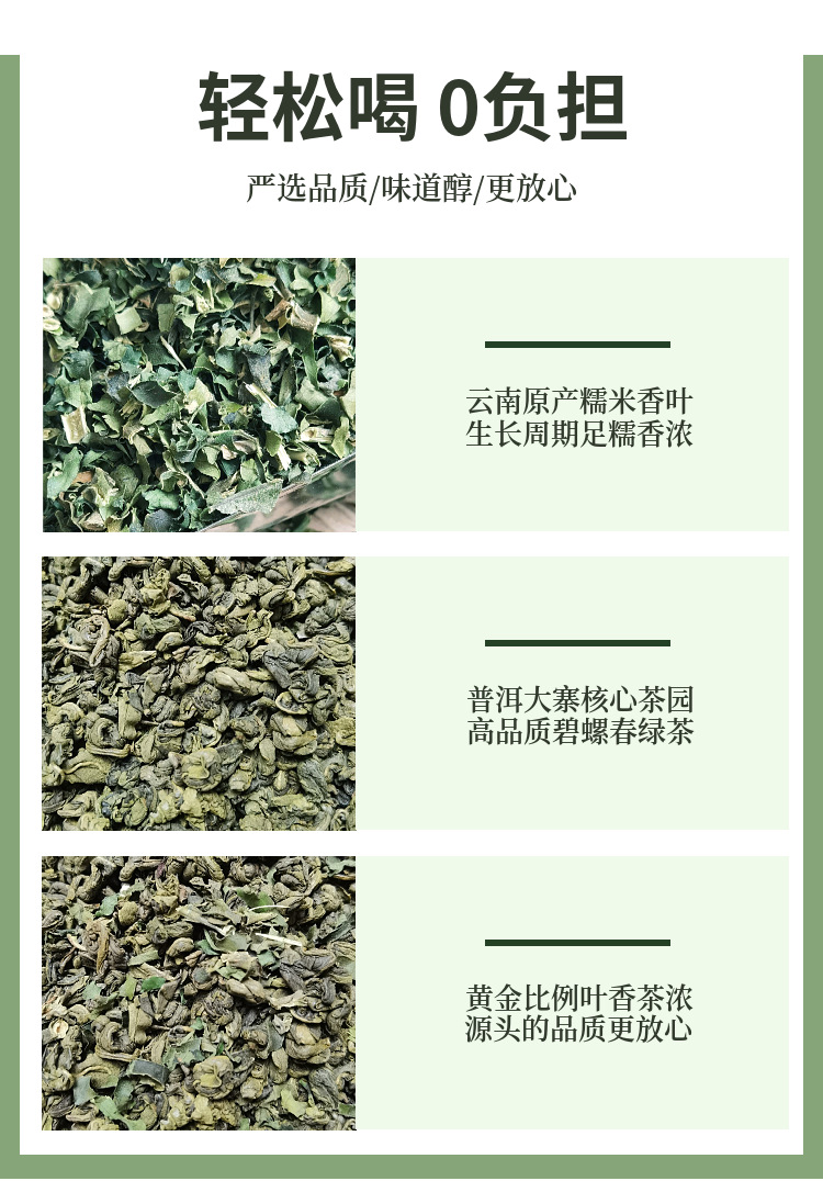 2024雲南もち米香葉プーアル茶パートナーもち米香草茶日干し純葉麒麟大口茶専用