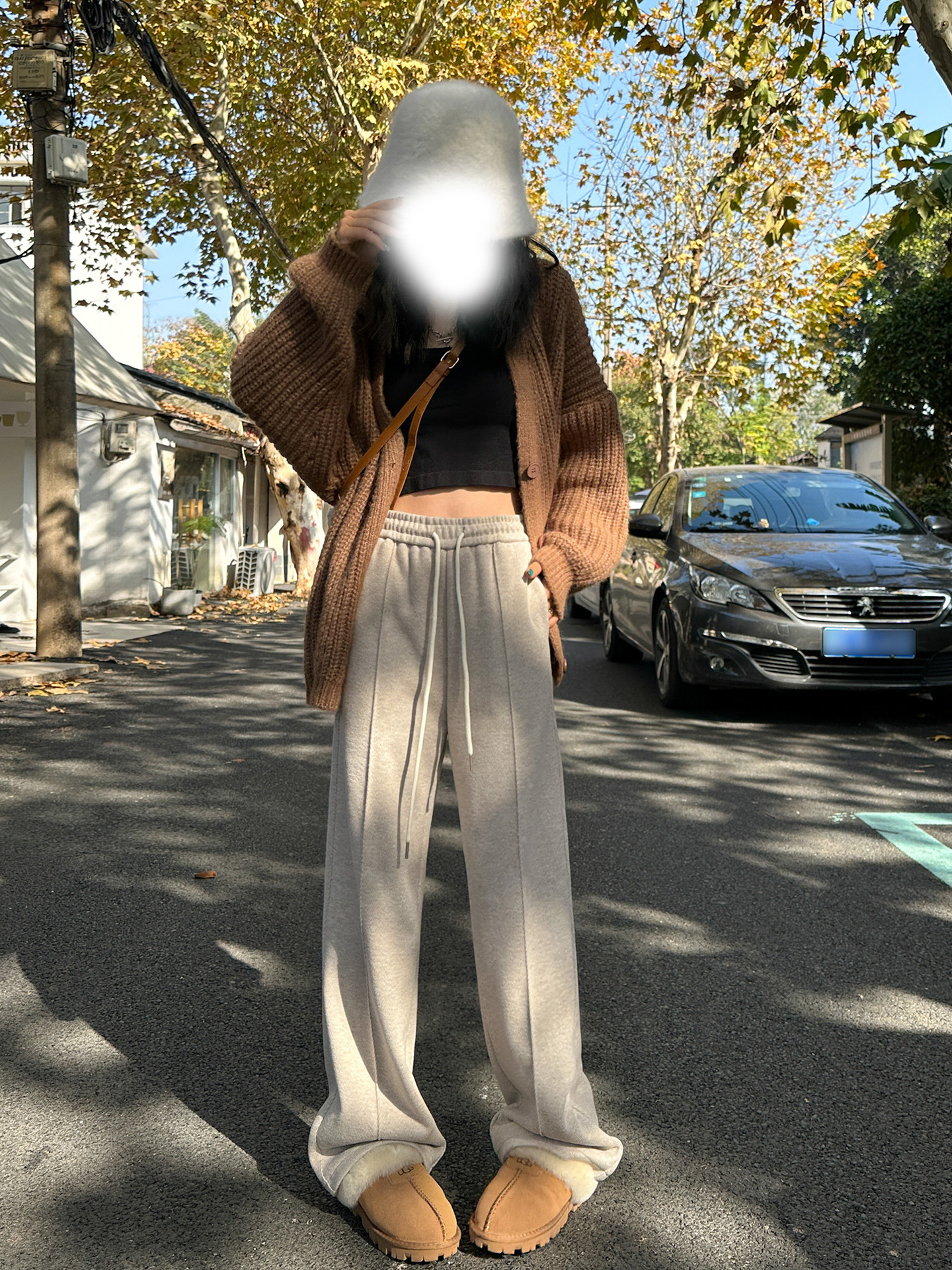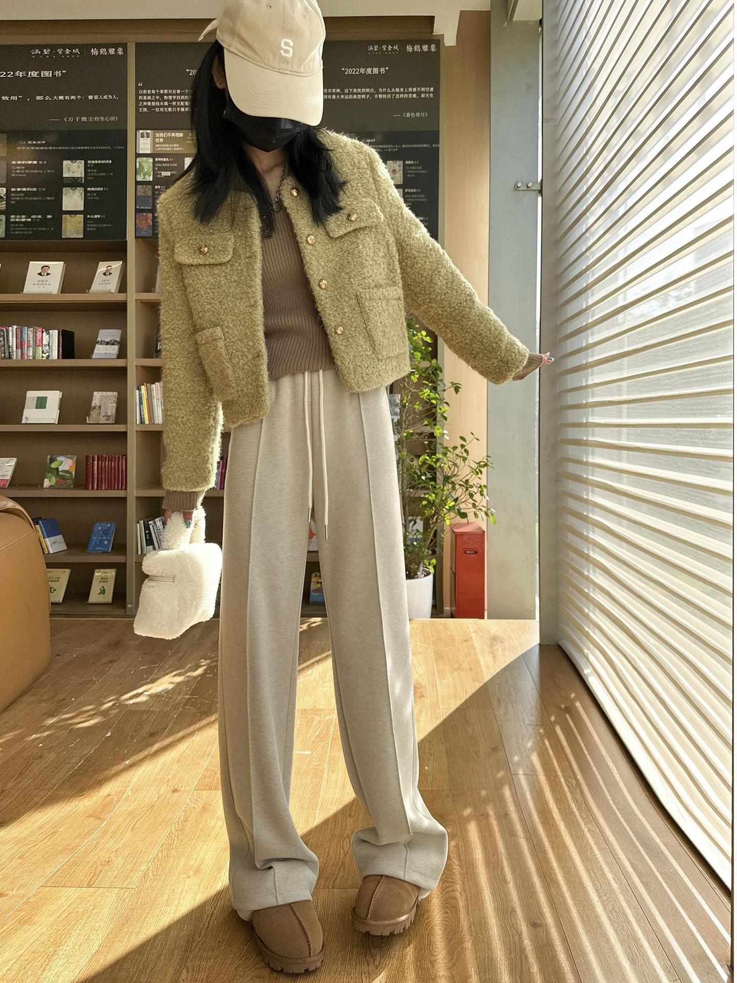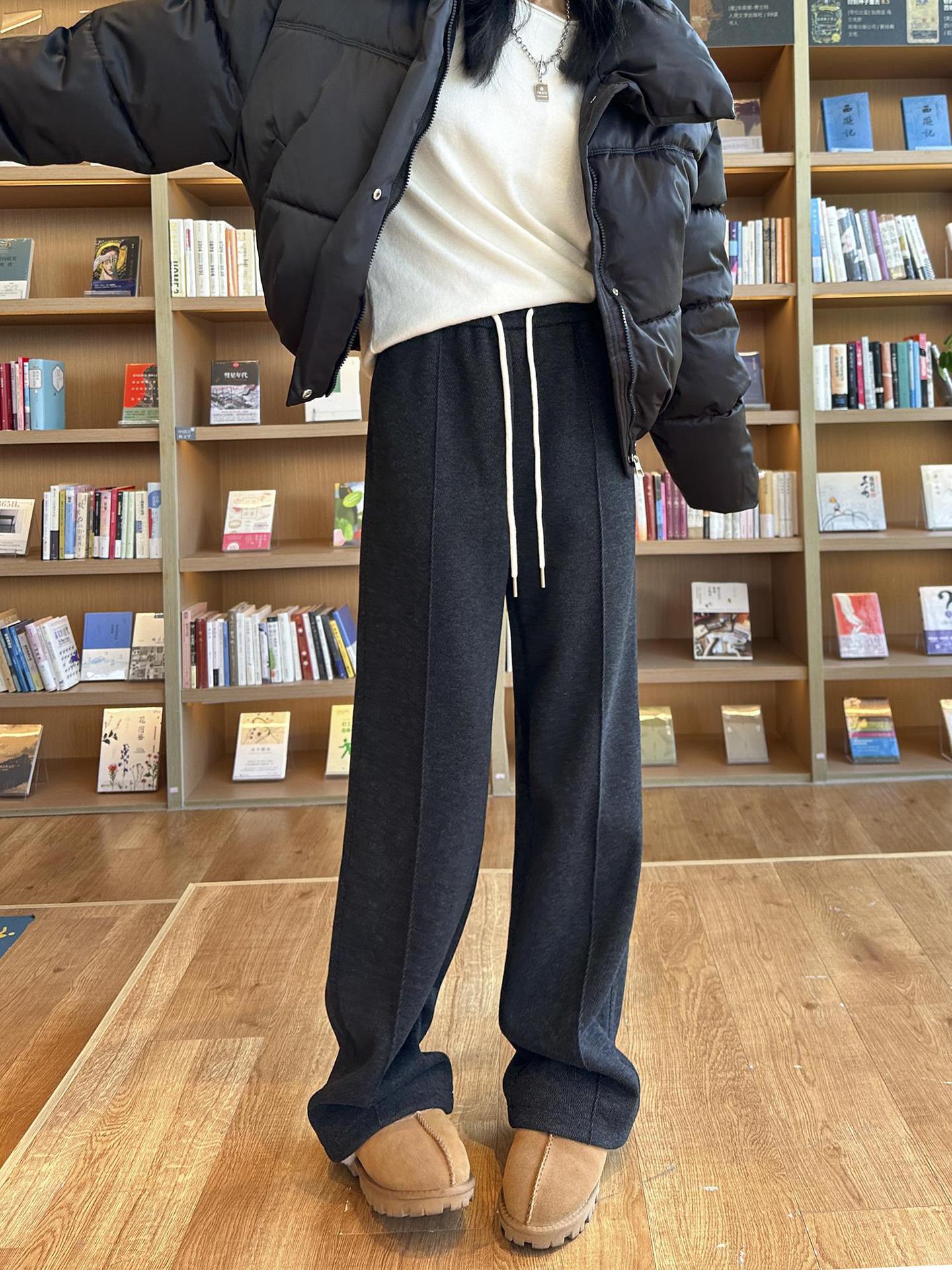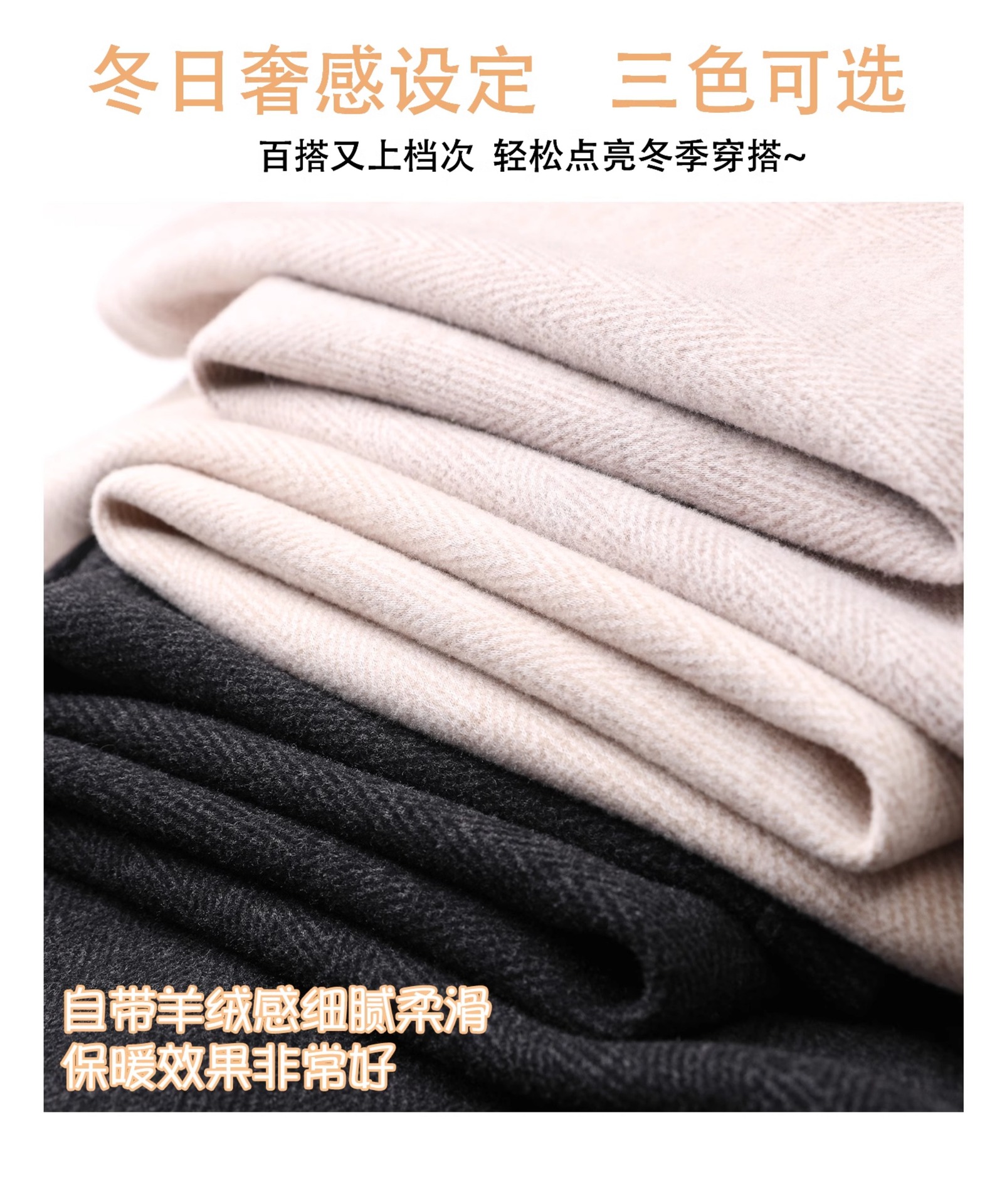 软糯毛呢糯米裤子窄版阔腿裤女直筒休闲九分秋冬季加绒加厚慵懒风