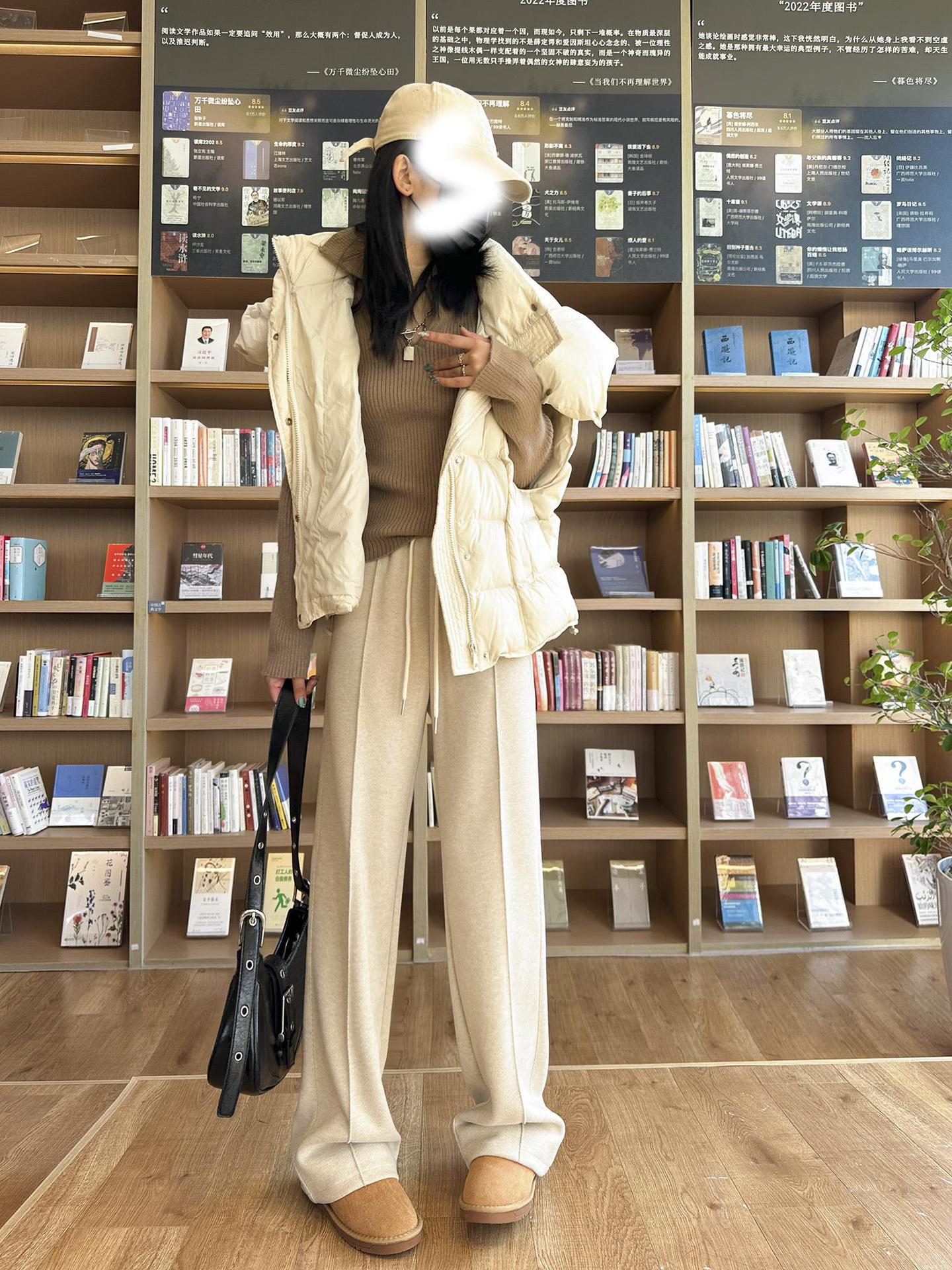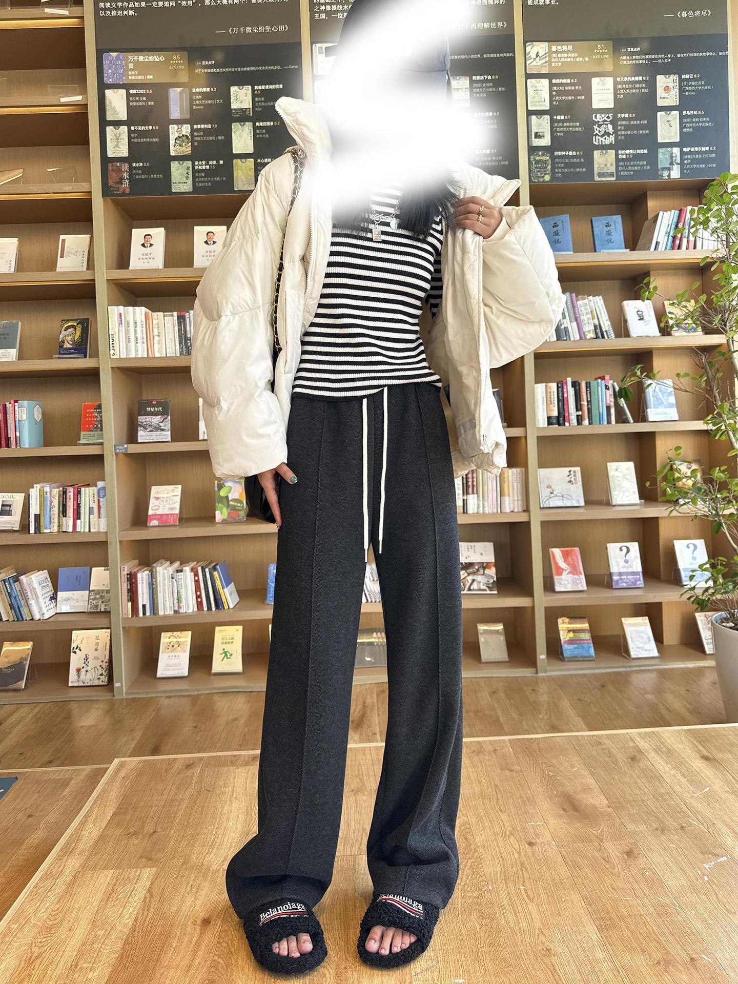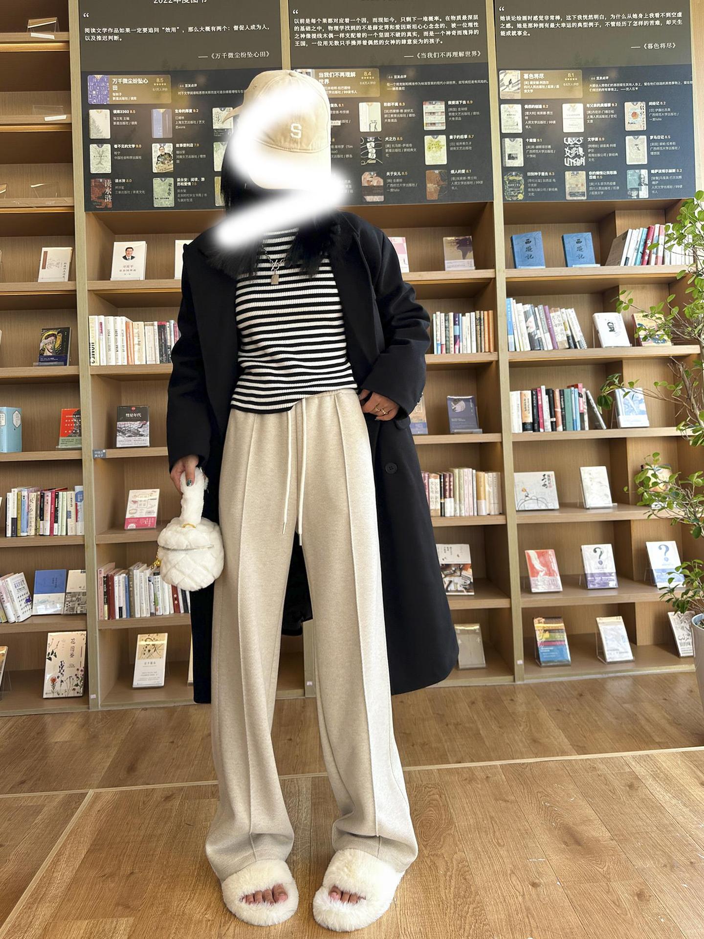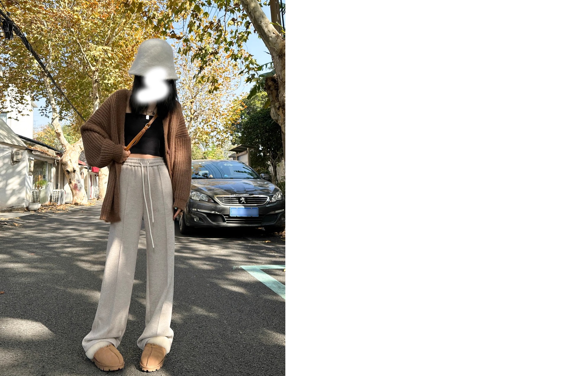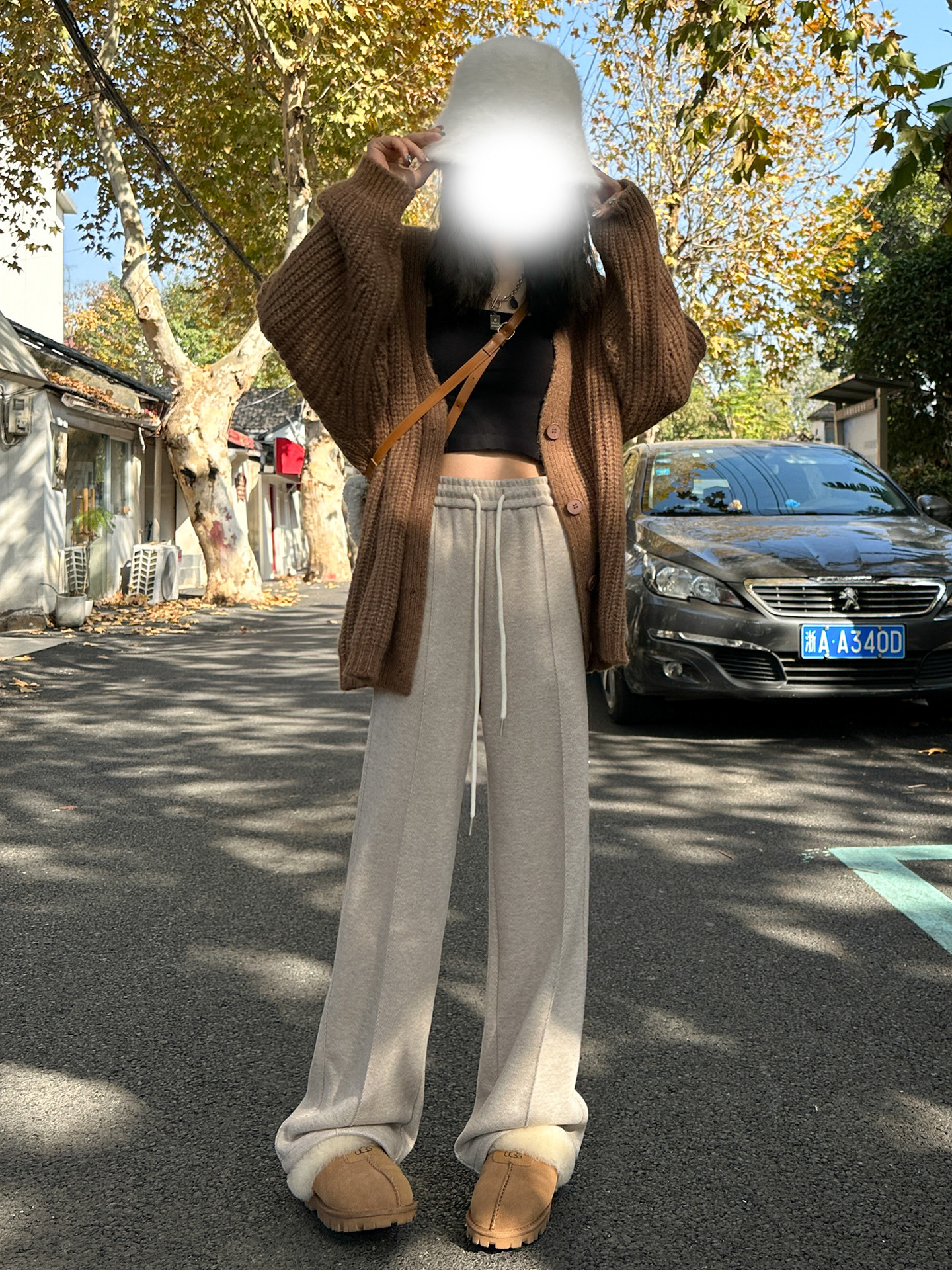 软糯毛呢糯米裤子窄版阔腿裤女直筒休闲九分秋冬季加绒加厚慵懒风