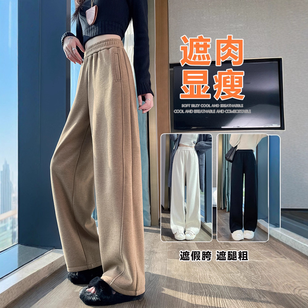 醋酸羊毛阔腿裤女秋冬大码显瘦小个子胖mm加绒裤子垂感直筒香蕉裤