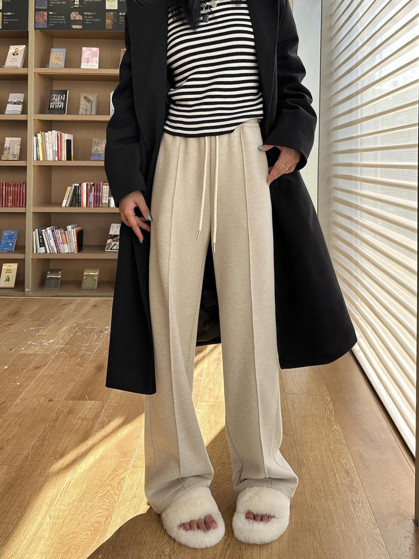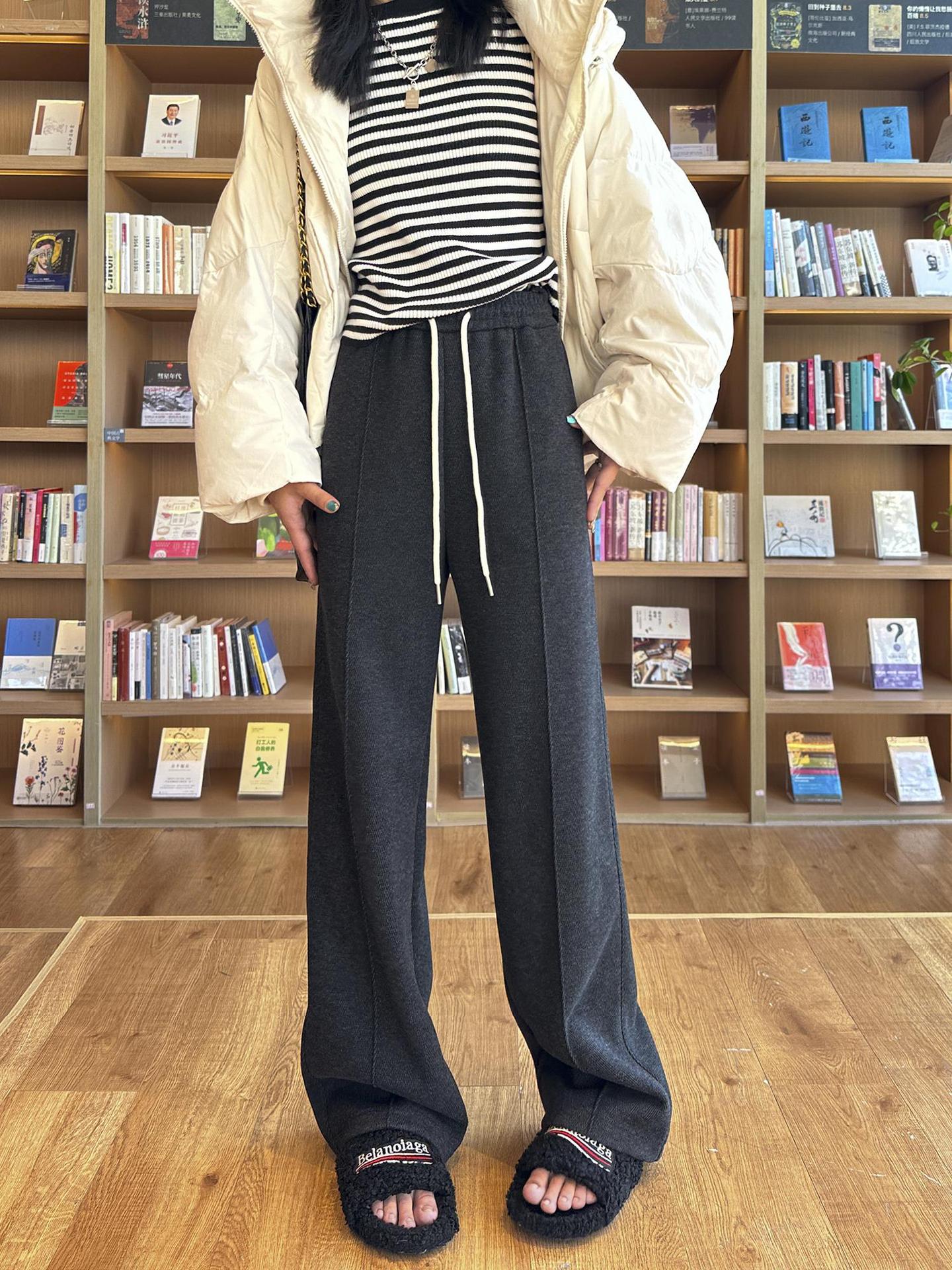 窄版仿羊绒阔腿裤女春秋2025新款小个子高腰垂感加绒休闲直筒裤子