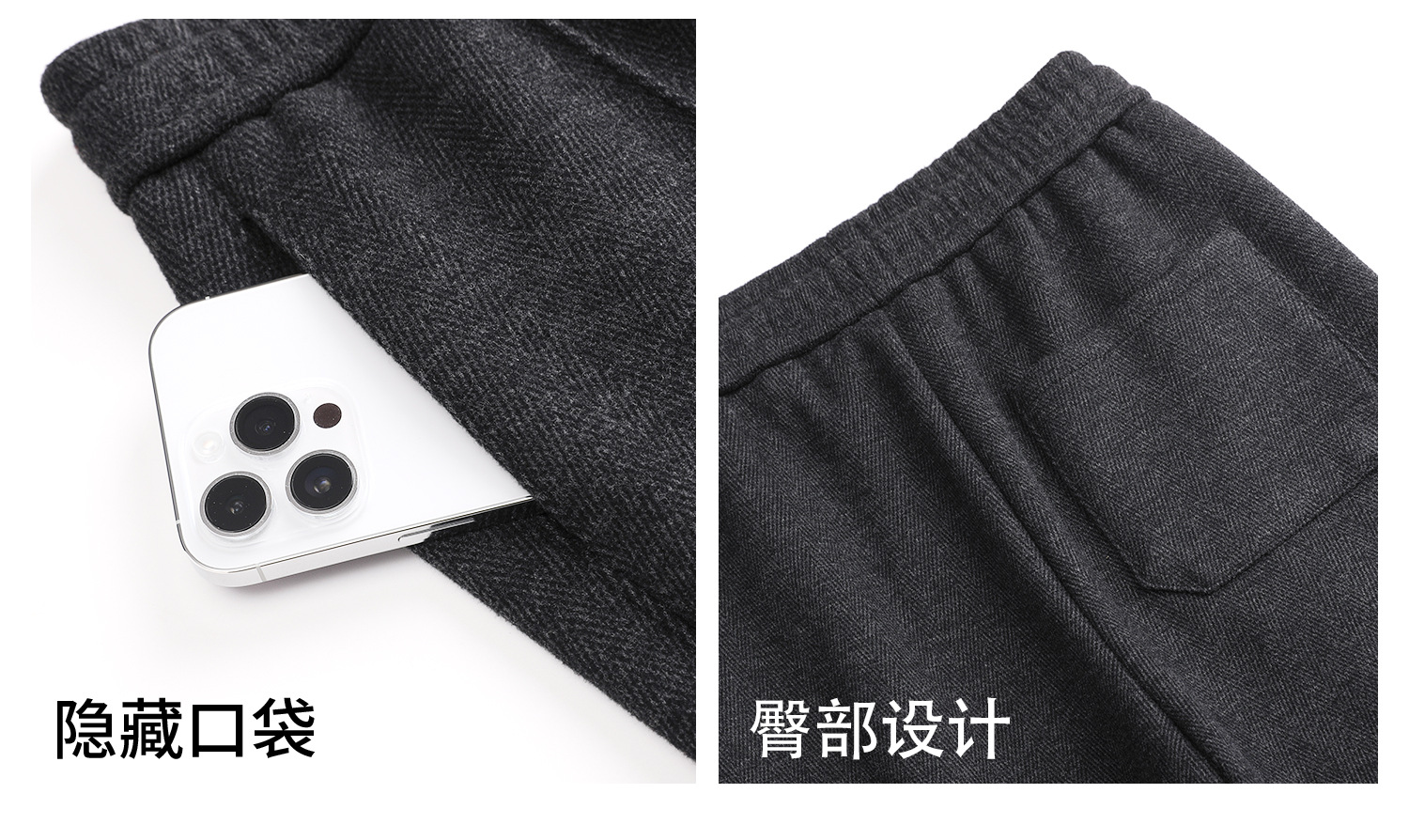 毛呢九分哈伦裤女春秋冬季高腰八分加绒加厚人字纹小个子直筒裤