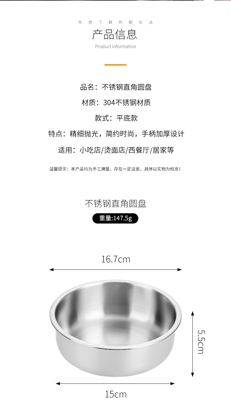 新型ステンレス円盤凉皮どら千層餅腸粉蒸し皿円形皿料理皿家庭用皿旬
