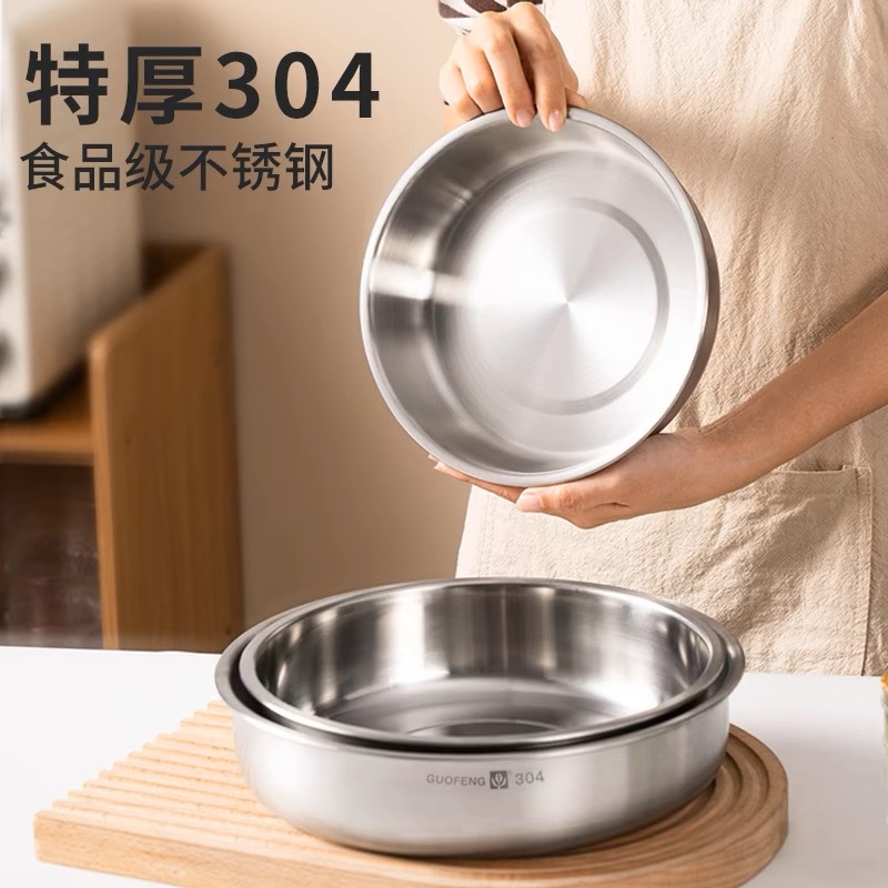 食品級蒸し料理蒸し皿304ステンレス円形大容量盆皿が家庭用円盤を深める