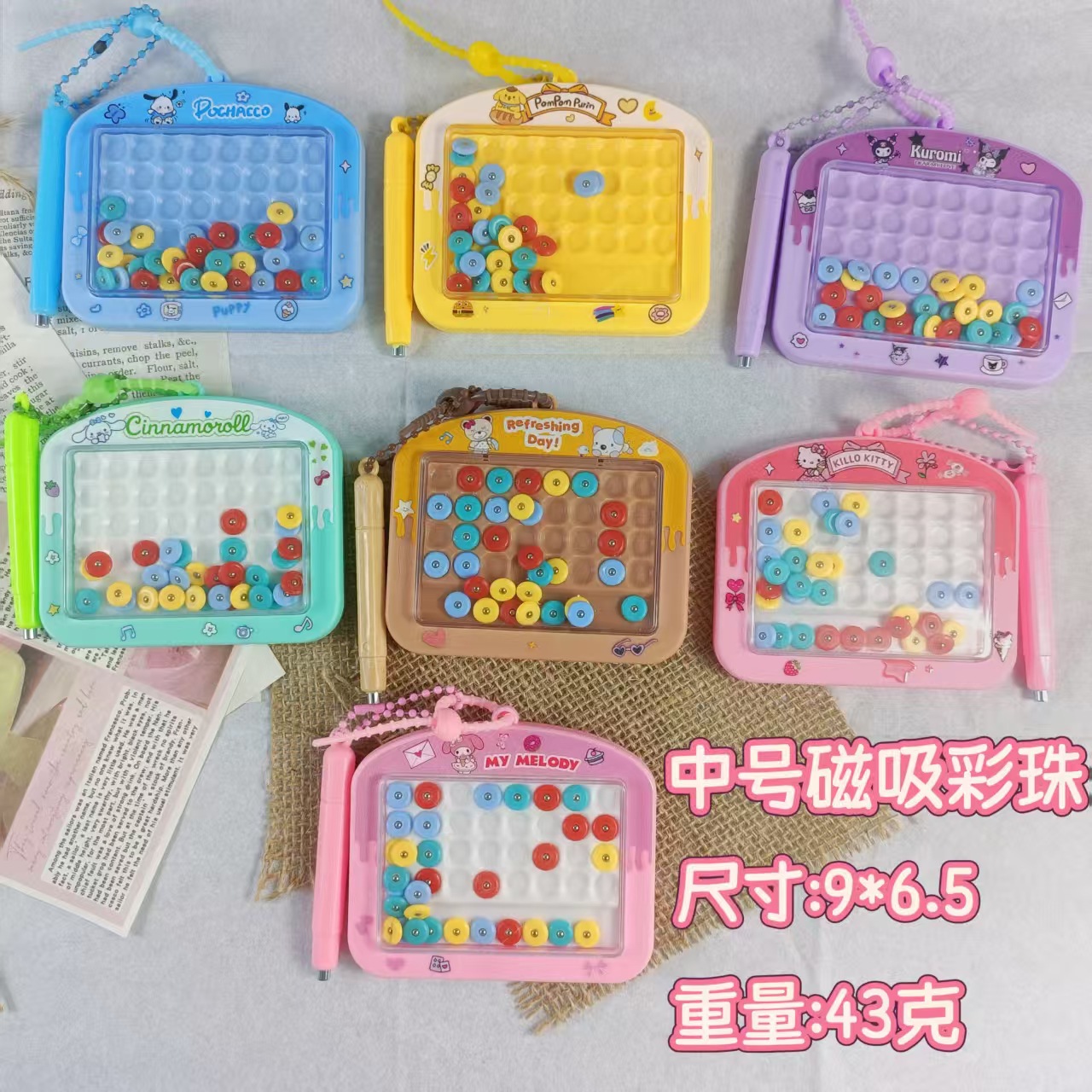 三丽鸥趣味磁吸彩珠盘钥匙扣益智创意解压绘画板儿童书包挂件礼物