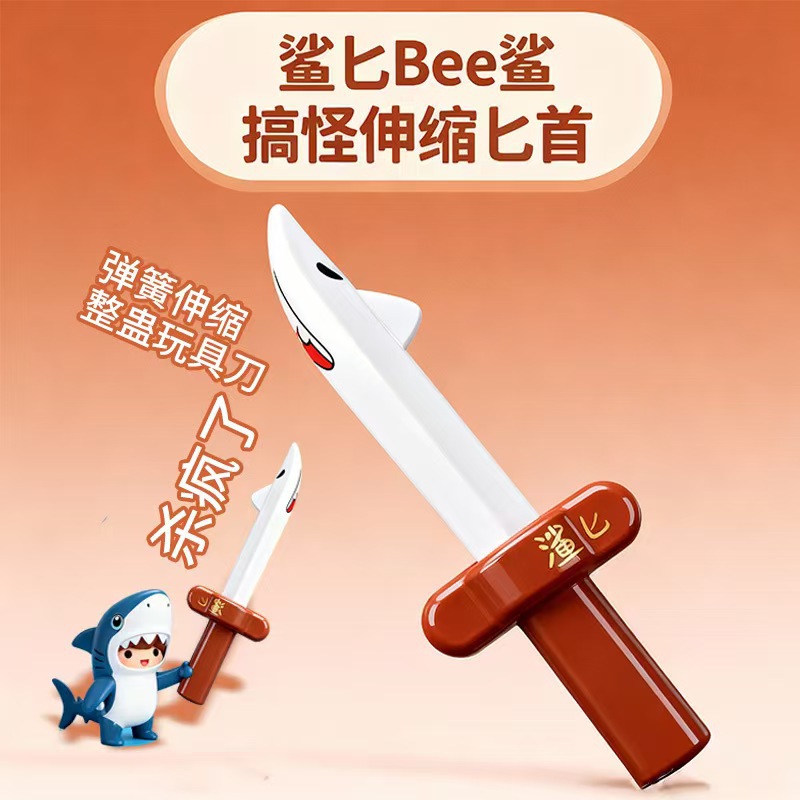 爆款玩具搞怪男孩女孩潮玩弹簧伸缩鲨鱼刀周边玩具鲨匕谐音梗搞怪