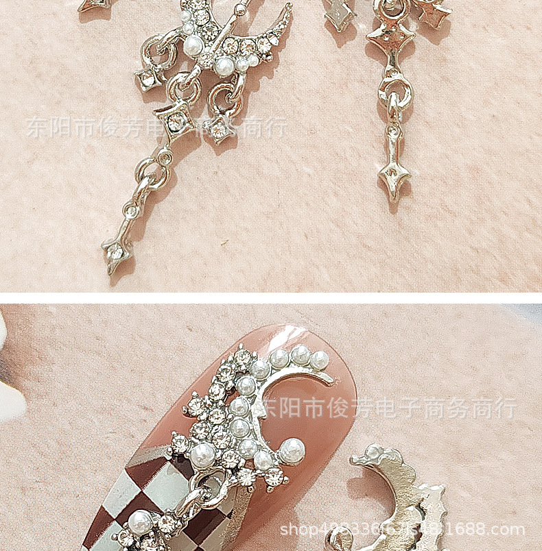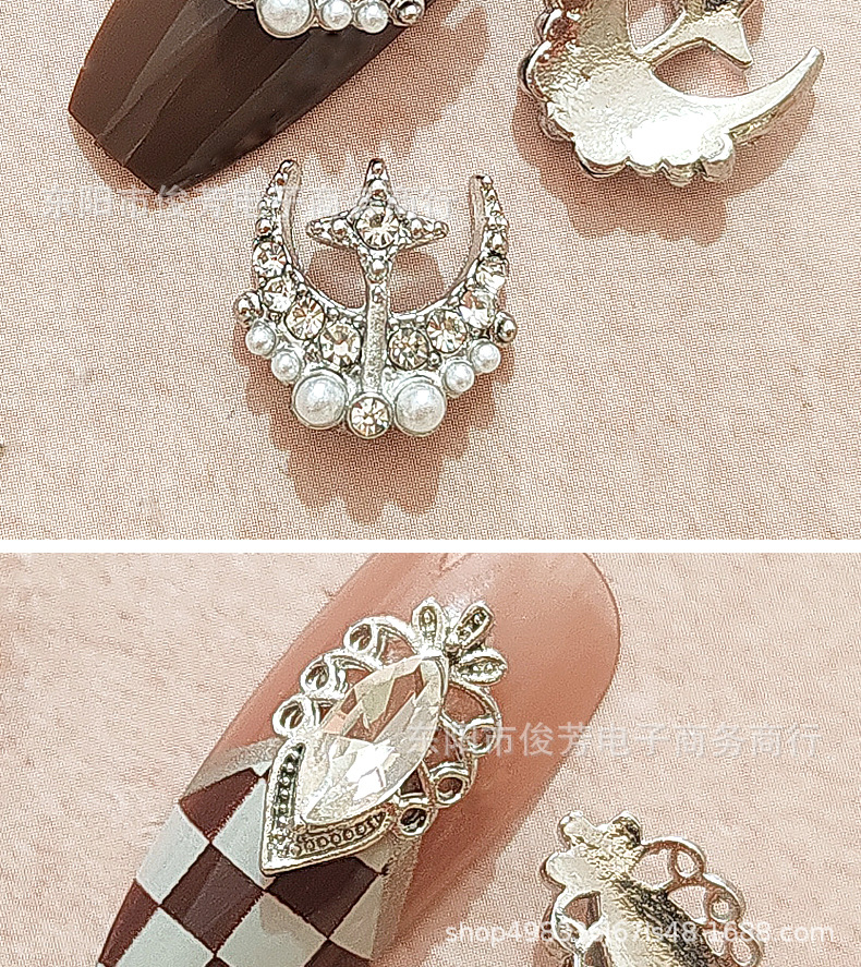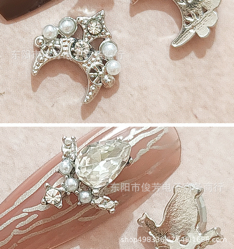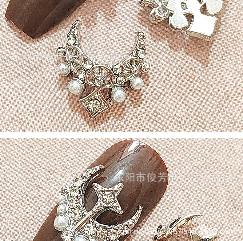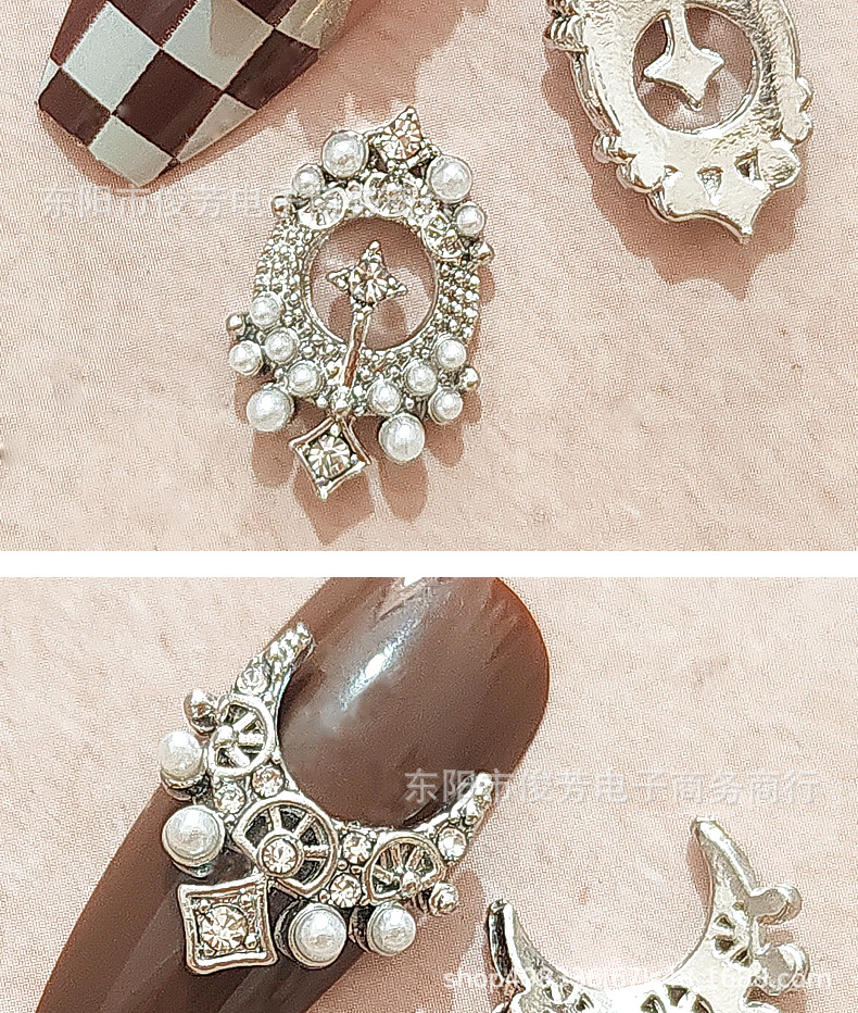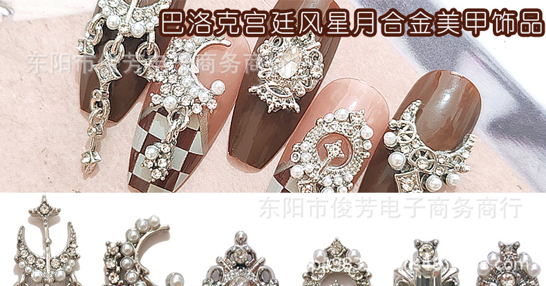 LZ同じタイプのネイル合金アクセサリー星月に真珠の豪華な宮廷の暗黒バロック風の爪を入れて貼ります。