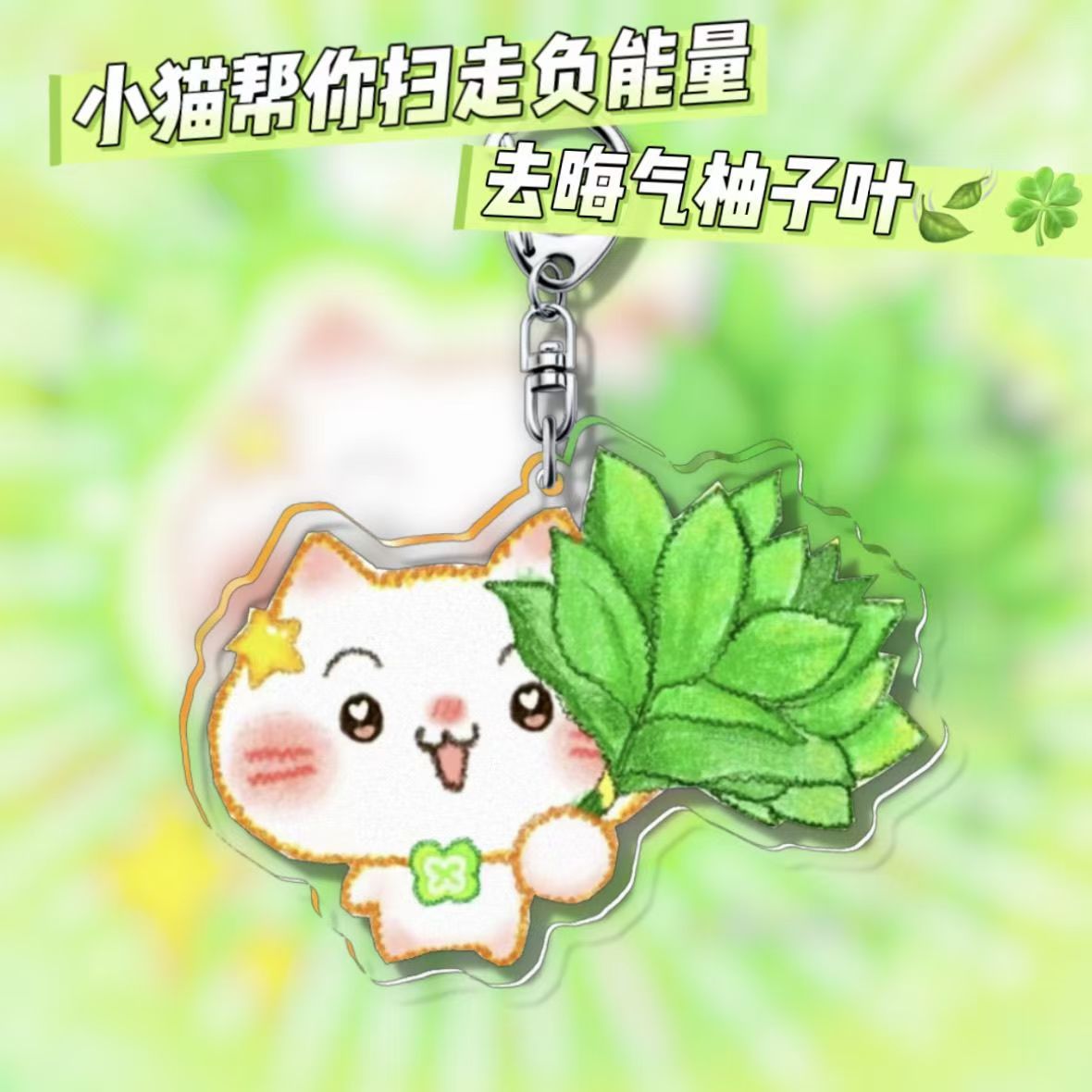 幸运柚子叶小猫亚克力挂件卡通可爱高颜值挂饰好运书包挂件送朋友