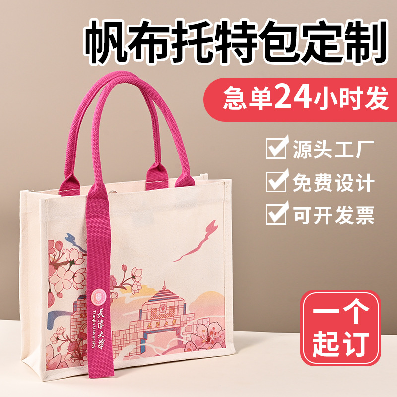 キャンバストートバッグ、ロゴのカスタム印刷、高級立体コーティングキャンバストートバッグ、大学企業文化宣伝用ハンドバッグ