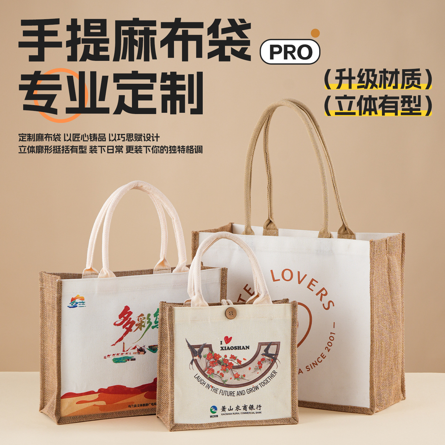 手提げ麻袋カスタムロゴ環境保護復古麻袋綿麻レジ袋黄麻布ギフト袋加急定