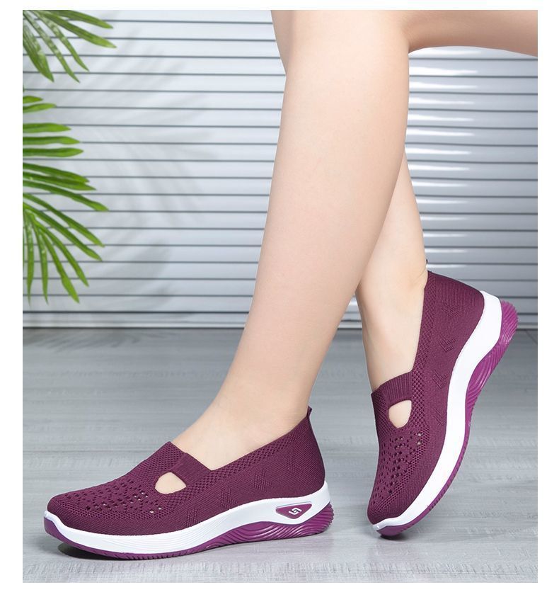 夏の新型の透かし彫りの古い北京の布の靴の女性の中高年のお母さんの靴の柔らかい底の滑り止めの軽い通気の健歩の靴