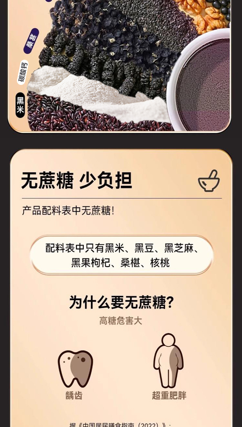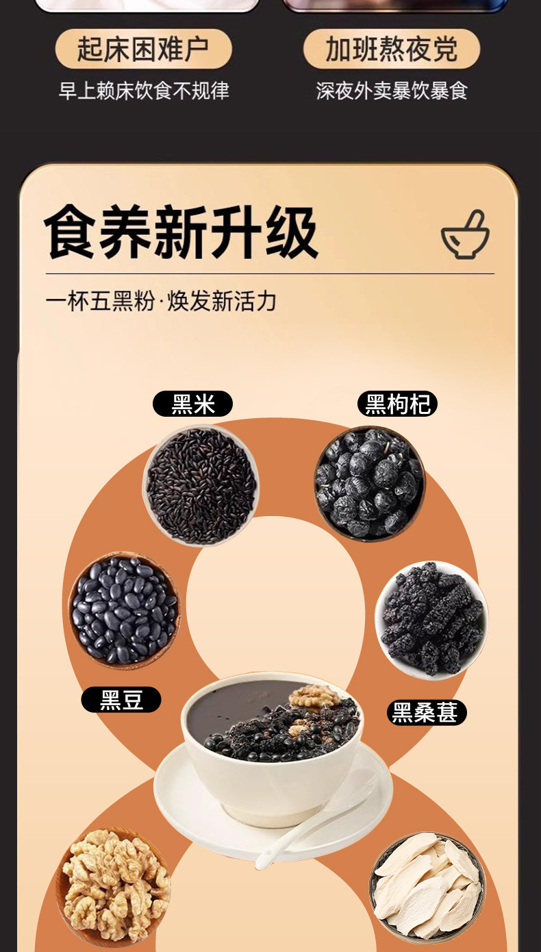 五黑粉不含糖五谷杂粮现磨代餐粉枸杞桑葚黑米黑豆冲饮谷物营养粉