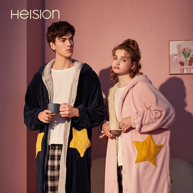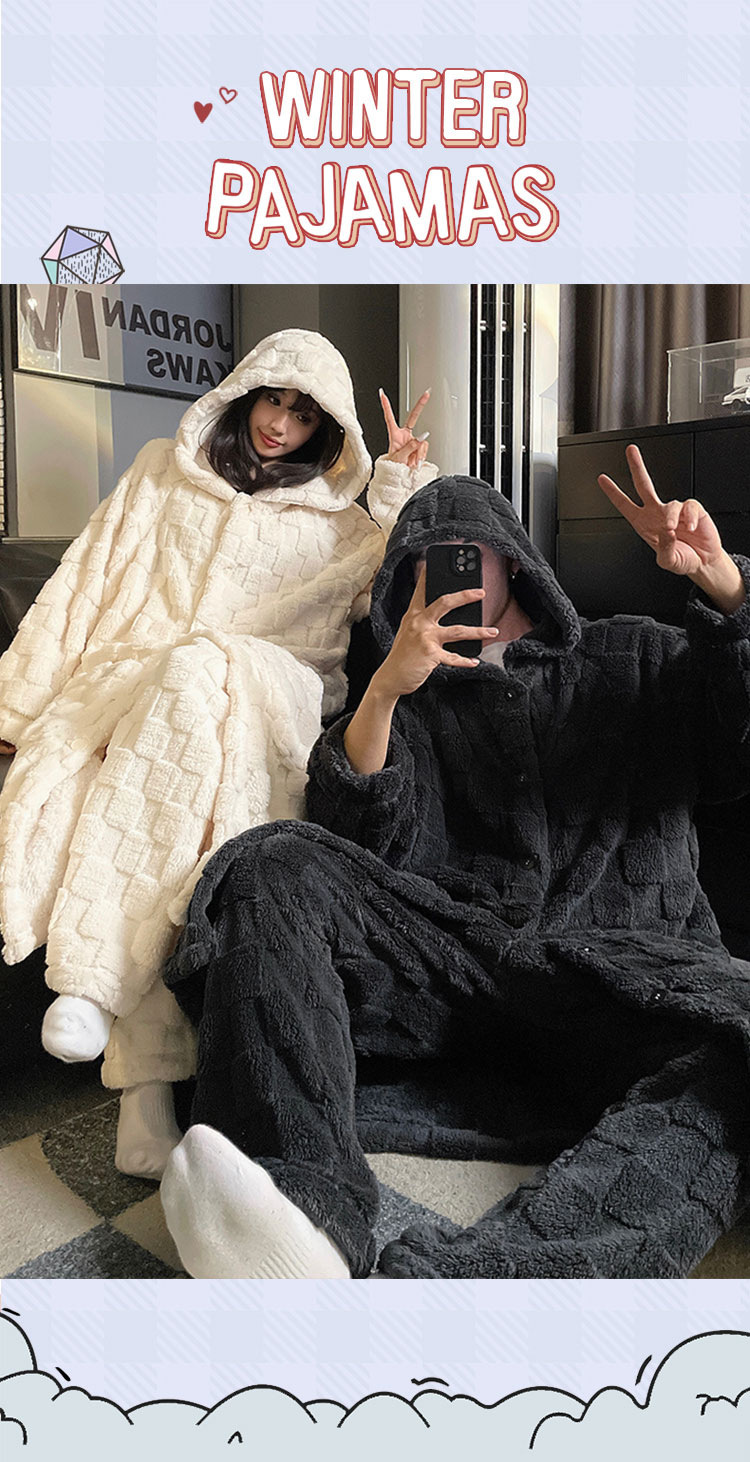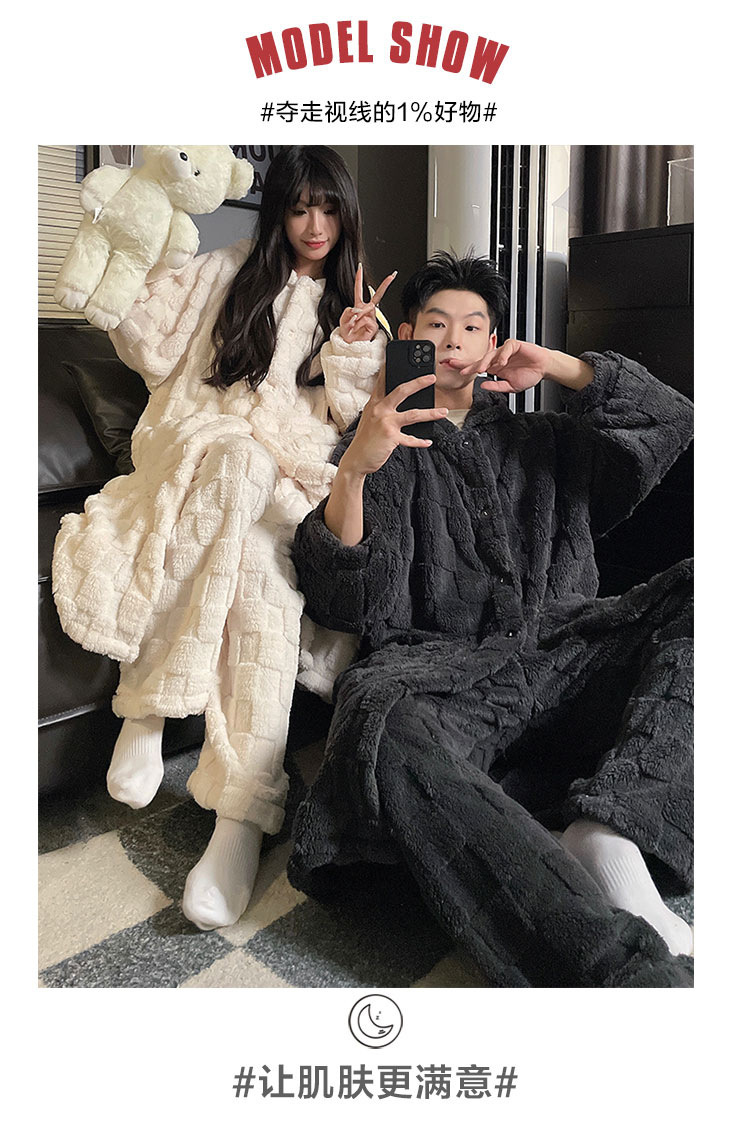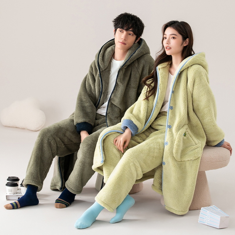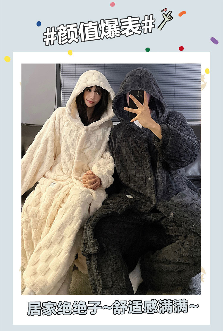 冬季跨境爆款中华绒情侣睡袍男女士长款加绒加厚保暖大码宽松套装