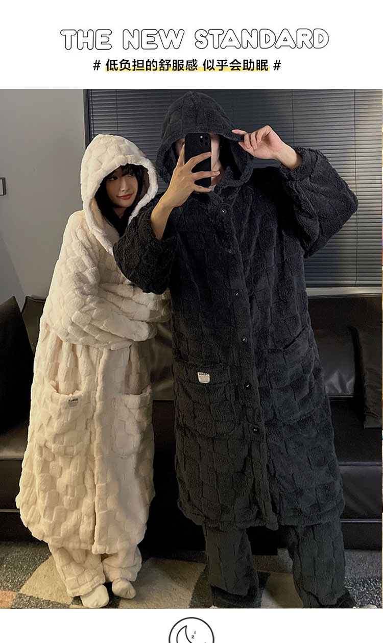 情侣珊瑚绒睡袍女冬季长款睡衣秋天男加绒加厚法兰绒家居服小个子